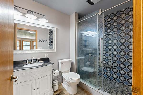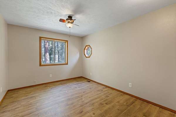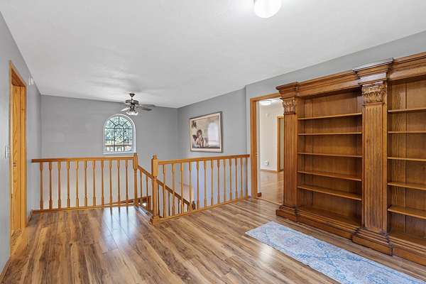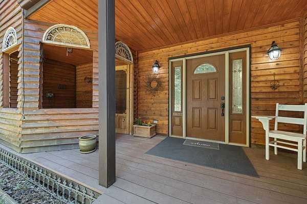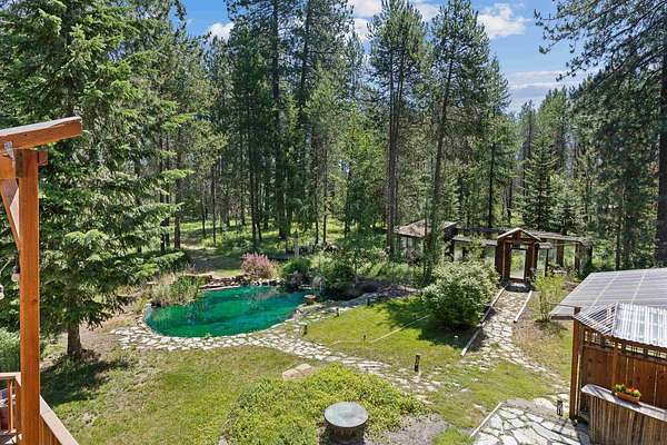 Escape to your own private woodland retreat on 4.7 wooded acres-offering rare seclusion where you can truly relax with no neighbors in sight. Enjoy mornings on the covered porch with the sound of the pond's waterfall and evenings soaking in the spa under the stars. The property features multiple decks and patios, an enclosed garden, and mature apple and pear trees. Inside, warmth and character meet thoughtful updates including refinished hardwoods, new flooring, fresh paint, roof (2019), furnace (2021), and central A/C (2023). The chef's kitchen offers granite counters, solid wood cabinetry, a custom island, and stainless appliances. The main floor primary suite includes dual walk-in closets and a travertine bath with double sinks. Upstairs features a loft, family room with deck access, updated bath, and three additional bedrooms, including a versatile bonus room with attic storage. A one-of-a-kind home where privacy, comfort, and nature come together.