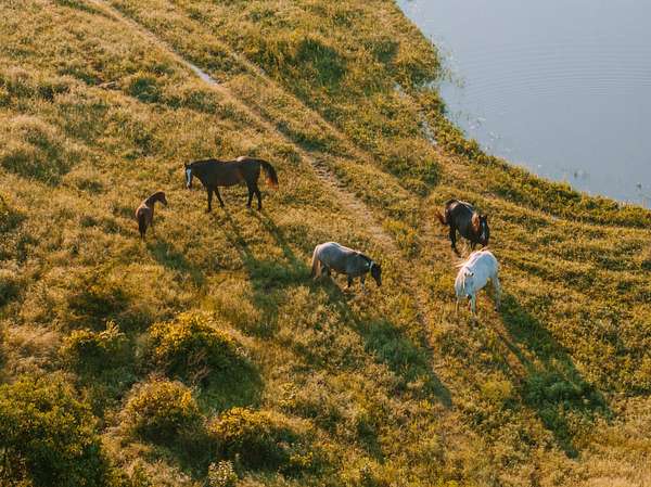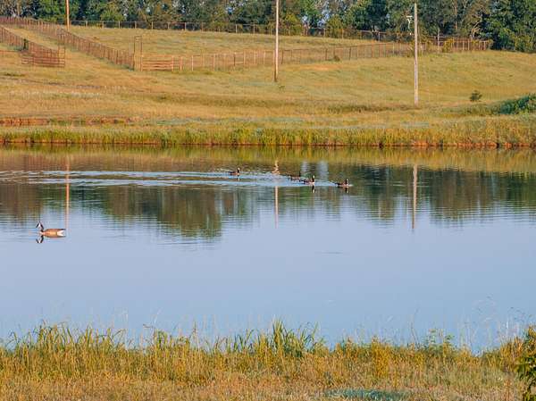 While the ranch was primarily designed for horse and livestock operations, it also supports a thriving population of wildlife. Whitetail deer are frequently seen throughout the property, benefiting from the expansive open spaces and natural cover. The numerous surface water sources across the ranch have also attracted a surprising variety of waterfowl. During the spring season, Canada Geese are known to nest on the property, contributing to the abundant presence of geese and other migratory birds in the area. This blend of agricultural functionality and natural habitat adds unique recreational and wildlife-viewing opportunities to the ranch.