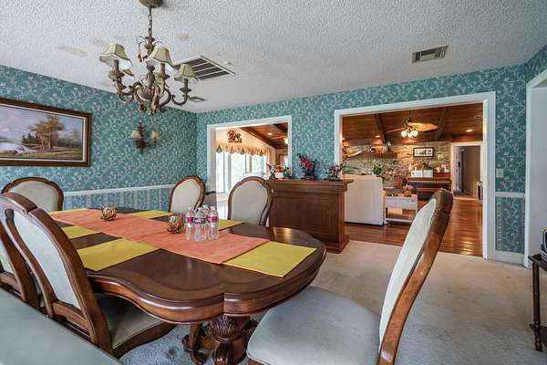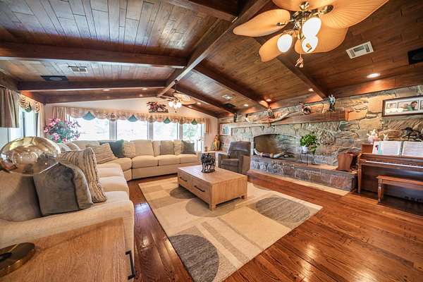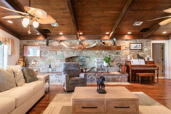 Additional structures at the headquarters include the main ranch residence, ideally situated just inside the front gate. This spacious 5,147-square-foot home features 4 bedrooms and 3 bathrooms, offering comfortable accommodations for owners or ranch managers. The interior boasts a large open-concept great room, an additional living area, and a formal dining room--perfect for both relaxed living and entertaining. Positioned to overlook a scenic pond, the home provides a clear view of the main ranch headquarters, blending privacy with a commanding vantage point of daily operations. Within the main gate, several additional buildings were designed to support the ranch's daily operations. A dedicated maintenance facility provides generous space for equipment storage and ongoing upkeep. Nearby, another multi-purpose structure includes office space, storage areas, and an additional horse barn with 6 stalls and adjoining pens--adding valuable capacity for horse housing and management. Also located in this area is the ranch hand or guest house, offering comfortable living quarters ideal for staff, visitors, or potential rental income. Together, these facilities contribute to the ranch's efficiency and versatilely.