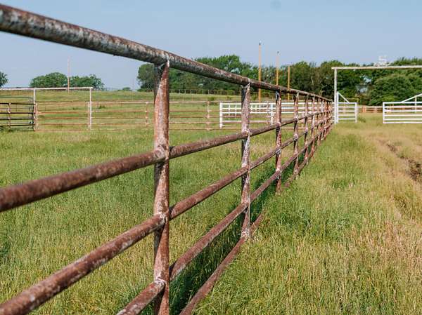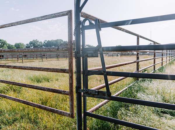 Just a short walk from the main building and loafing pens are several well-constructed horse pens, two are 50'x150' x 6' pens made up of 3" steel piping, 6" steel corners and gate post, custom steel gating with alleyways for ease of sorting and use of horses or other livestock. These larger turnout areas provide ample space for exercise, grazing, or rotational use, offering flexibility for horse management.