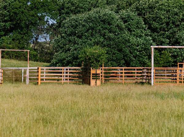 The ranch's pasture system has been thoughtfully designed to support efficient livestock management, featuring three separate sets of working pens strategically placed across the property. With over 16 rotational pastures, the ranch includes numerous pens and holding lots to accommodate flexible and large-scale operations.