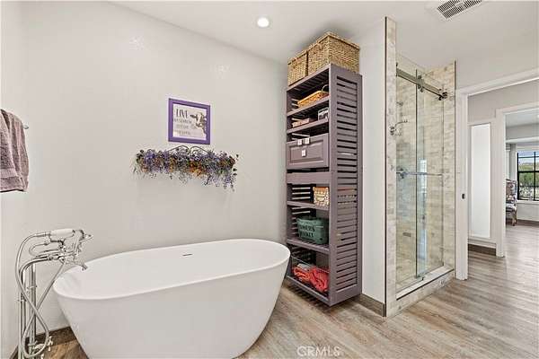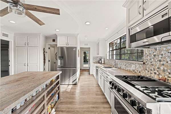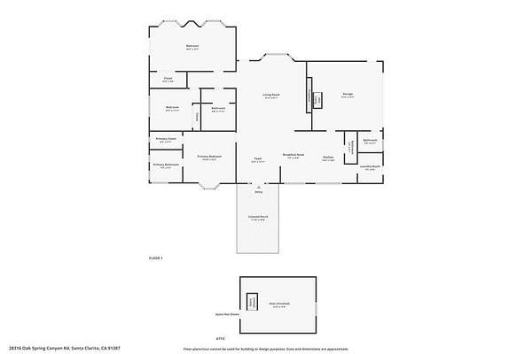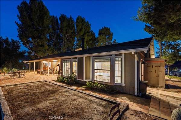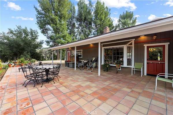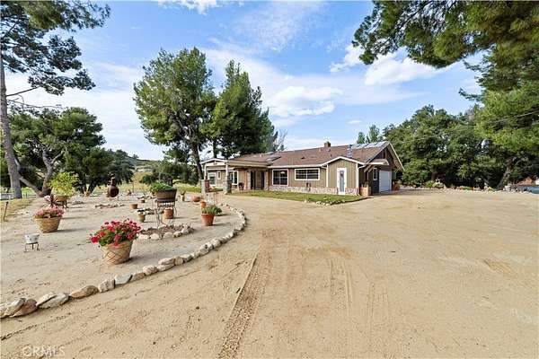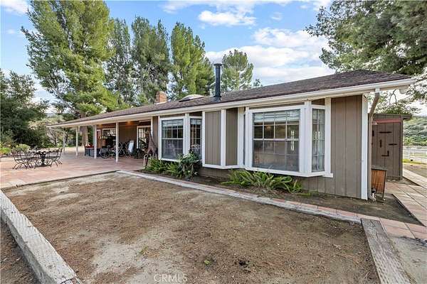 Call Denise West 805-390-4142. Welcome to this beautifully remodeled single-story ranch-style home, ideally located in the highly sought-after Sand Canyon community. From the moment you step through the oversized front door, you are welcomed by a bright, open floor plan filled with natural light from skylights and a bank of windows. The inviting living room features a cozy fireplace with a classic brick surround and custom built-in bookcases, creating a warm and comfortable space for relaxing or entertaining. The home offers three bedrooms, two and a half bathrooms, plus an additional full bathroom located in the garage. The primary suite is a true retreat, complete with an en-suite bath and a spacious, walk-in closet. The 2nd bedroom is generously sized and thoughtfully designed with a heating stove, custom closet, bay windows that capture the morning light, and French doors. The main bathroom has been tastefully updated with a marble-tiled shower and a standalone soaking tub. The remodeled kitchen is a true showpiece, featuring satin-finish quartz countertops, a large center island, a Viking range, and crisp white cabinetry with self-closing drawers. This space is perfectly suited for both everyday living and hosting gatherings. Above the epoxy-floored garage, you will find a versatile attic bonus room ideal for a home office, cave or private space. Additional features include a dedicated storage room and built-in cubbies. The garage also includes a full bathroom. There is a separate mudroom with the laundry room just inside the rear entry w/extra storage. Situated on approximately three acres, this exceptional horse property offers your own private mini-ranch. Amenities include a large riding arena, box stalls, pipe corrals, a tack room, a storage shed, a tractor, and more. The property is serviced by both city water and two private wells, making it ideal for expansive landscaping and livestock needs. The home's electrical system has been upgraded with three EcoFlow Delta backup batteries, powered by solar panels and housed in an outdoor cabinet. This system is capable of powering the entire home during power outages. Additional features include LED recessed lighting in most rooms, art lighting throughout the home, a hard-wired camera security system, and solar-powered lighting for the stalls and corrals. This is a rare opportunity to own a private retreat in Sand Canyon where comfort, elegance, and country living come together beautifully.