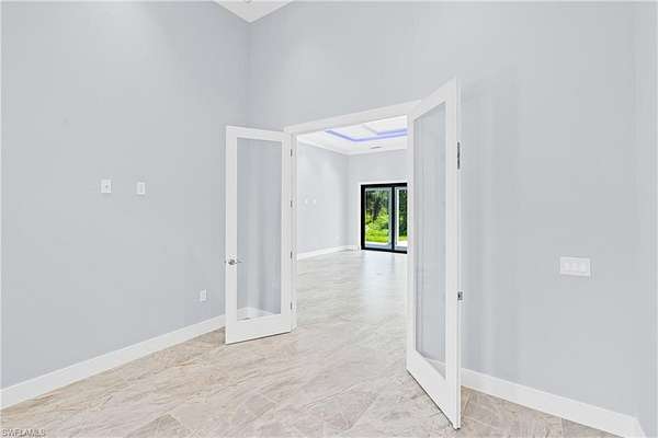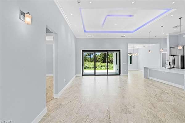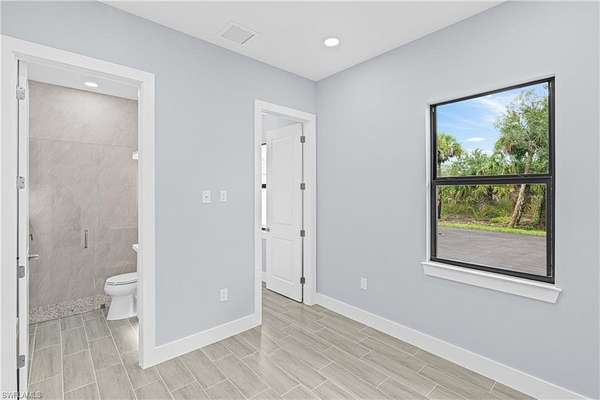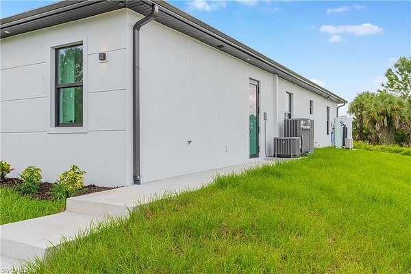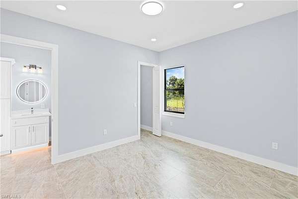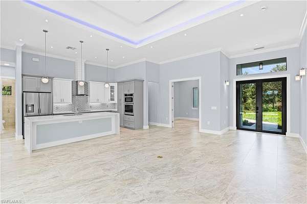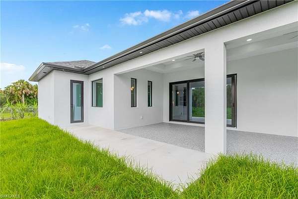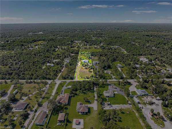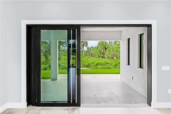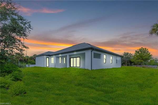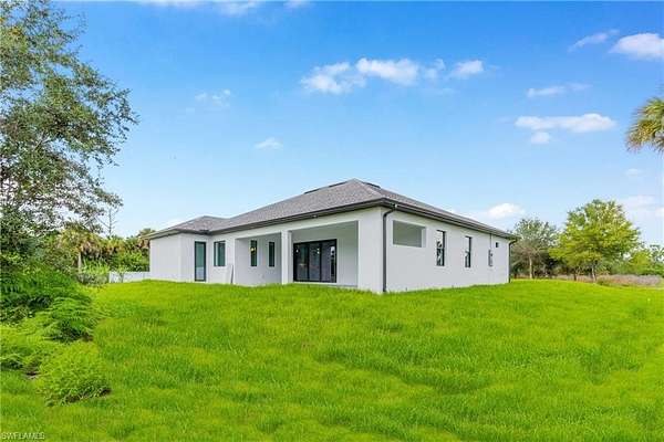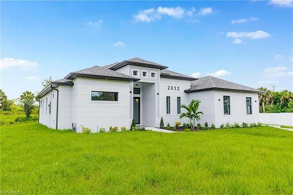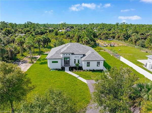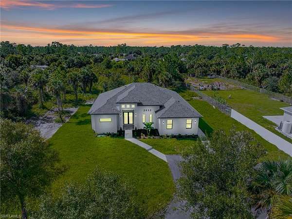 NEW CONSTRUCTION MAIN RESIDENCE + GUEST HOUSE + 2.27 ACRES. Situated in the highly desirable Golden Gate Estates neighborhood, this exquisite property offers unparalleled privacy thanks to a wide 12-foot by 370-foot-long driveway. The exterior features decorative lighting, full gutters with underground drainage, and lush natural landscaping. Step inside to discover a thoughtfully designed interior boasting high-end finishes throughout, including elegant porcelain floors, impact-resistant windows and doors, and high ceilings with tray and coffered ceiling details. The home is equipped with a whole-house surge protector, two A/C units with smart thermostats, smart LED lighting, and a REVERSE OSMOSIS WATER SYSTEM. The MAIN RESIDENCE features 3 spacious bedrooms with modern lighting and generous walk-in closets, and 3 luxurious bathrooms - one with access; perfect for a future pool. The primary suite offers a bathroom with dual vanities and a beautifully designed shower. All bathrooms include LED mirrors and high-quality glass doors. The expansive living and dining areas flow seamlessly, with a den offering a serene front-facing view - perfect for a home office. The laundry room is ideally located inside the home and comes fully equipped with a "Washer and Dryer". A chef's dream, the kitchen features custom wood cabinetry, quartz countertops with a stunning waterfall island, a mix of white and gray cabinetry, under cabinet lighting, and high-end built-in appliances including a wall-mounted oven/microwave and range hood. Enjoy the outdoors year-round in the oversized lanai, complete with a summer kitchen and wide sliding glass doors that open to expansive views of your private backyard. The property sits on a fully UPLAND LOT from mid-property to the rear, offering stable, dry ideal outdoor living. This expansive space allows for future additions, such as a pool, workshop, or recreational area. NO HOA. Additionally, this home includes a separate GUEST/ IN-LAW SUITE, ideal for rental income or multi-generational living. It offers 1 bedroom with raised TV wiring, 1 full bath with LED mirror and elegant shower, a comfortable living space, and a fully equipped kitchen. Don't miss this opportunity to own a versatile, luxurious property in one of the most sought-after areas.