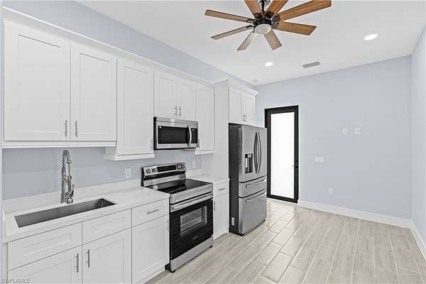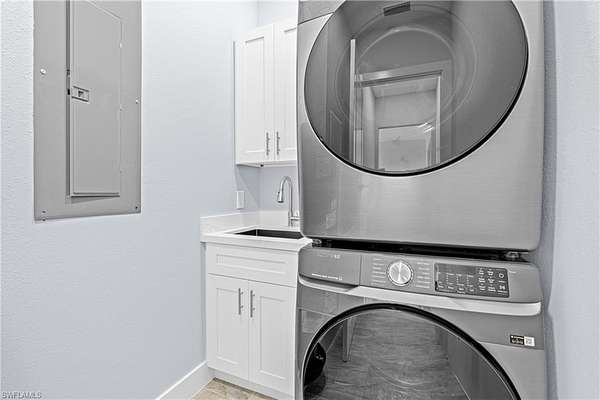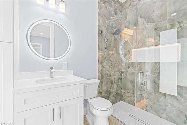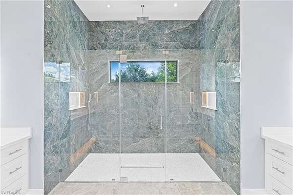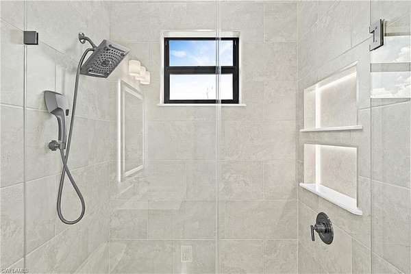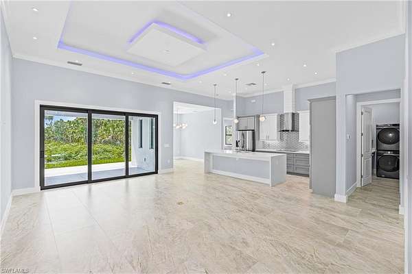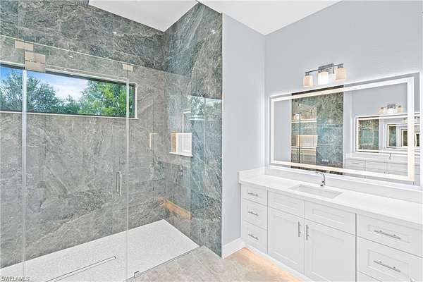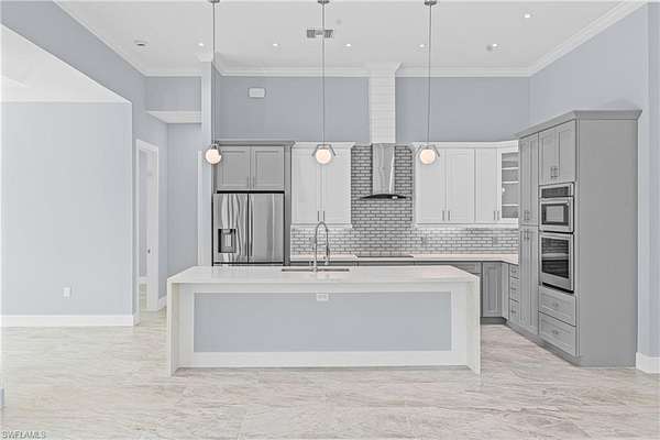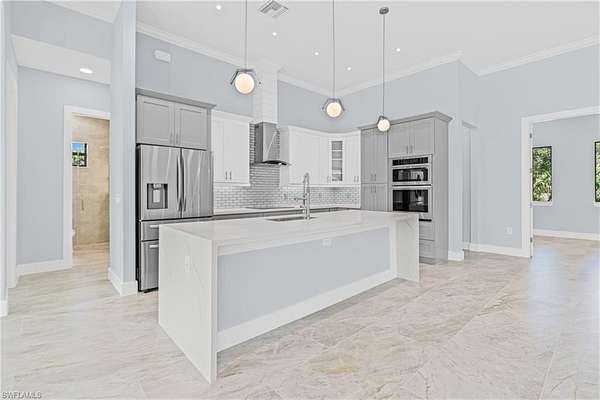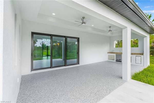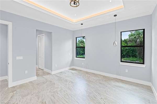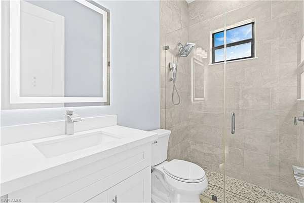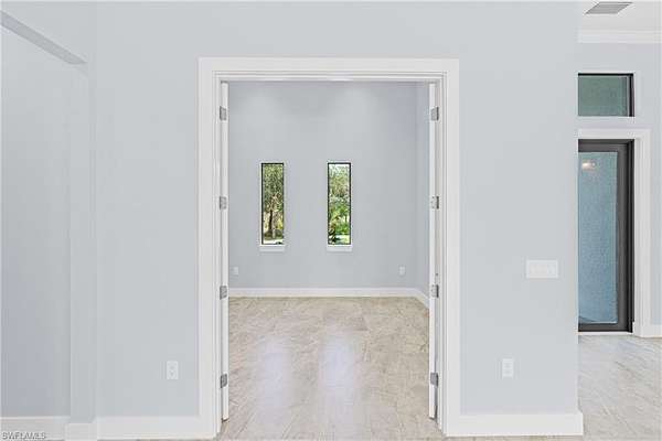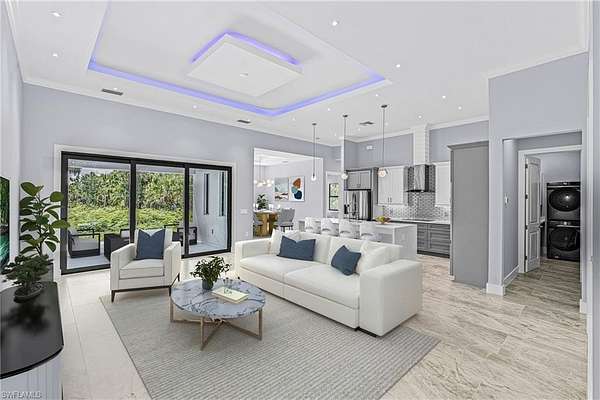 NEW CONSTRUCTION MAIN RESIDENCE + GUEST HOUSE + 2.27 ACRES. Situated in the highly desirable Golden Gate Estates neighborhood, this exquisite property offers unparalleled privacy thanks to a wide 12-foot by 370-foot-long driveway. The exterior features decorative lighting, full gutters with underground drainage, and lush natural landscaping. Step inside to discover a thoughtfully designed interior boasting high-end finishes throughout, including elegant porcelain floors, impact-resistant windows and doors, and high ceilings with tray and coffered ceiling details. The home is equipped with a whole-house surge protector, two A/C units with smart thermostats, smart LED lighting, and a REVERSE OSMOSIS WATER SYSTEM. The MAIN RESIDENCE features 3 spacious bedrooms with modern lighting and generous walk-in closets, and 3 luxurious bathrooms - one with access; perfect for a future pool. The primary suite offers a bathroom with dual vanities and a beautifully designed shower. All bathrooms include LED mirrors and high-quality glass doors. The expansive living and dining areas flow seamlessly, with a den offering a serene front-facing view - perfect for a home office. The laundry room is ideally located inside the home and comes fully equipped with a "Washer and Dryer". A chef's dream, the kitchen features custom wood cabinetry, quartz countertops with a stunning waterfall island, a mix of white and gray cabinetry, under cabinet lighting, and high-end built-in appliances including a wall-mounted oven/microwave and range hood. Enjoy the outdoors year-round in the oversized lanai, complete with a summer kitchen and wide sliding glass doors that open to expansive views of your private backyard. The property sits on a fully UPLAND LOT from mid-property to the rear, offering stable, dry ideal outdoor living. This expansive space allows for future additions, such as a pool, workshop, or recreational area. NO HOA. Additionally, this home includes a separate GUEST/ IN-LAW SUITE, ideal for rental income or multi-generational living. It offers 1 bedroom with raised TV wiring, 1 full bath with LED mirror and elegant shower, a comfortable living space, and a fully equipped kitchen. Don't miss this opportunity to own a versatile, luxurious property in one of the most sought-after areas.