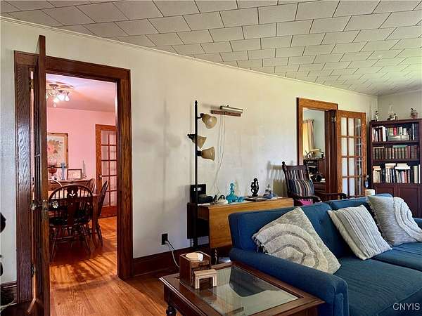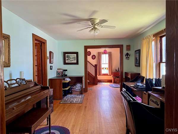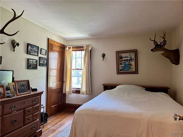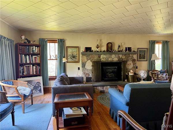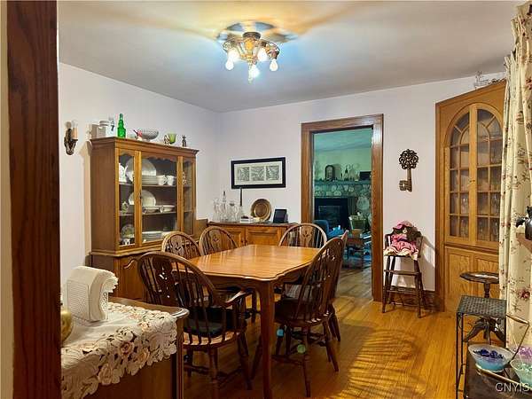 Come and take a look at this 3 bedroom 2 full bathroom home on 5.9 acres of land in the heart of this quant little town. Spacious rooms offer endless possibilities for customization, allowing you to create your dream home. It boasts original hardwood floors and a prime location near the school and other amenities. Above ground pool that was fully serviced and winterized last year. Garage/Barn on property for storage, work area, and parking. Property being sold "AS IS".