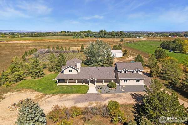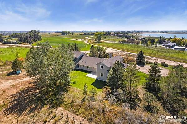Tucked away on a quiet no-outlet road just south of Wellington, this spacious property combines privacy, views, and versatility on 19.5 acres. With easy access to I-25, it offers both seclusion and convenience. The home spans over 3,000 square feet and features wood floors, a finished oversized 3-car attached garage, and a bonus room over the garage that's ideal for a recreation or entertainment space. Take in sweeping Front Range views along with water views of North Poudre Reservoir #6 from multiple outdoor spaces, including a charming wraparound porch. The property is beautifully framed by mature landscaping and provides plenty of room for animals, recreation, or crop production. Horses, cows, and other livestock are welcome, and the land offers the flexibility to grow crops or create pasture. A large detached shop adds even more functionality, whether for hobbies, storage, or equipment. For those seeking water rights, one share of North Poudre Irrigation water is available for purchase separately (not included in the listed price). With no HOA, endless opportunities for use, and a rare balance of privacy, acreage, and accessibility, this property is ready to support a wide variety of lifestyles.
