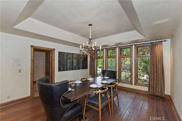 Featuring miles of views from every window, 4 spacious bedrooms and 4.5 luxurious baths, this home blends mountain elegance with everyday comfort. The main-level living room/office boasts a warm fireplace and opens to a tranquil deck overlooking towering pines. The XL chef's kitchen includes a generous island, professional-grade appliances, and flows seamlessly into the light-filled breakfast area and large family room with another fireplace. A formal yet open dining room is perfect for entertaining. ~ Step outside to a level patio, beautifully landscaped and fenced yard, ideal for outdoor dining or simply enjoying the peace and privacy of your forested yard. ~ The master retreat is its own sanctuary, complete with a private deck, romantic fireplace, spa tub, sauna, and walk-in shower. ~ Additional amenities include air conditioning, high-speed internet, all public utilities, and county-plowed & maintained roads--making year-round access effortless. ~ Located just 3 minutes to Lake Arrowhead's private Tavern Bay Beach Club, 4 minutes to the marina, and 10 minutes to the Village for shopping, dining, and entertainment. ~ With privileges to the crystal-clear & private waters of Lake Arrowhead, this estate offers an unmatched combination of luxury, privacy, and proximity. ~ Simply stunning--schedule your private tour today!