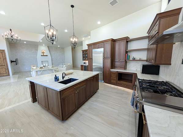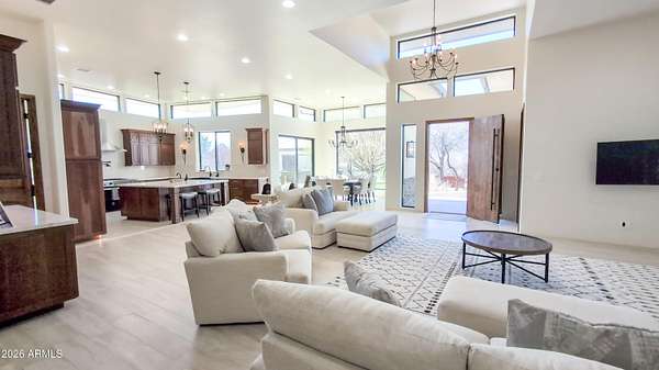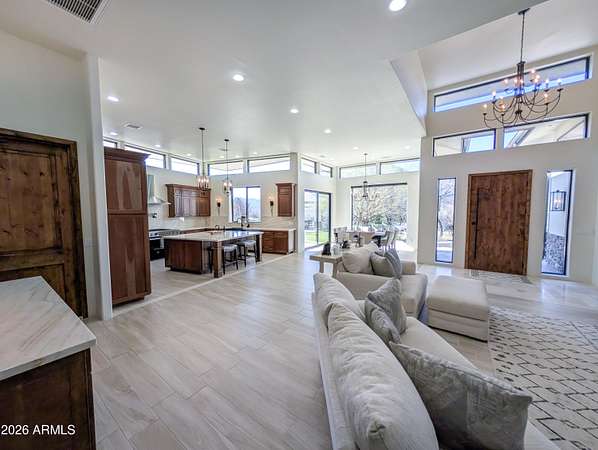 Experience luxury on 2+ sprawling acres in this stunning 3,400 sq. ft. custom home that features a seamless open concept anchored by a Chef's Kitchen with premium finishes and high-end appliances. The layout offers 4 bedrooms and 4 baths, including a spa-like Primary Bedroom retreat complete with His & Her Walk-in Closets. Dedicated Den/Office space and a Guest Suite with ultimate privacy. Step outside to an Outdoor Kitchen, perfect for entertaining against a backdrop of sprawling, usable land. Property Highlights: - 3,400 Sq Ft - 4 Beds/ 4 Baths + Den - Chef's Kitchen - Laundry Room - Dedicated Guest Suite, 2 Bds 1 Ba, w/Laundry - Oversized Garage for trucks and toys - Outdoor Kitchen - Horse Property - Backs Public Land - Well Exists - Fully Fenced - Electric Gate - Large Conex Box to convey with property
