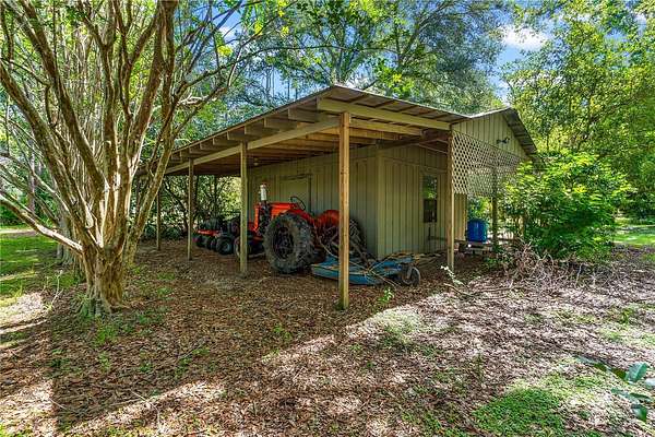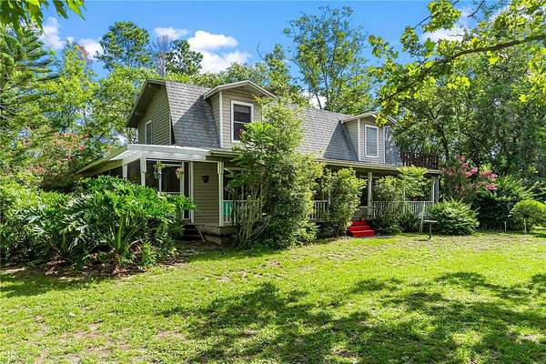 Under contract-accepting backup offers. Welcome to your dream countryside escape! Nestled on 7 pristine acres, this gated picturesque farm-style cottage offers the perfect blend of rustic charm and peaceful living. Tucked among lush, mature trees and surrounded by rolling green pastures, this charming 3-bedroom, 2.5-bath home offers the perfect balance of country living with cozy aesthetics. Nestled on peaceful acreage, this home features classic wraparound porches that invite you to slow down and savor the simple pleasures of life. Imagine starting your morning with a cup of coffee on the porch swing, or evening lemonade while enjoying the sights and sounds of birds and grazing animals in the open fields, every corner of this land tells a story of natural beauty and rural tranquility, like right out of a storybook. This property includes a detached two-car garage for secure parking and storage, plus a separate workshop ideal for hobbies, projects or unwinding in your own space. What makes it even more special? A full unfinished basement-a rare and valuable feature in Florida real estate, perfect for creating a custom bonus living space! Whether you envision a hobby haven, guest suite or media room, this hidden gem offers room to grow. When you step inside, you'll find a warm, inviting interior with spacious living areas, stunning stone wood-burning fireplace that serves as a striking centerpiece, seamlessly connecting the living room and kitchen, bringing warmth, to the heart of the home. This open concept cottage, has a well-appointed kitchen, and cozy warm bedrooms filled with natural light and lots of closet space. Wake up to the tranquility in your primary suite, which opens onto a spacious private balcony, offering that indoor-outdoor connection in total privacy that allows you to enjoy your own beautiful property from the top! Schedule a tour today!