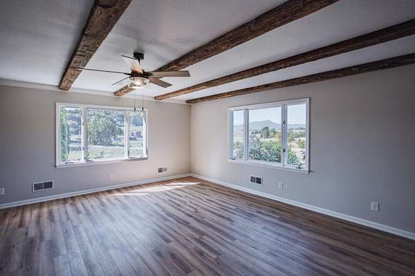 Beautifully updated one-level brick home offering breathtaking mountain views on 2.04 private acres. This 3-bedroom, 2.5-bath residence features a thoughtful layout, quality finishes throughout, and the ease of single-level living. The remodeled kitchen and baths blend modern style with timeless appeal, while abundant natural light enhances the home's serene setting. The living room showcases a large fireplace with original chestnut ceiling beams, adding warmth and character. Enjoy peaceful outdoor living from the screened porch while listening to nearby Hays Creek and taking in stunning scenery in every direction. The attached garage provides convenience, and the full walk-out basement with high ceilings offers excellent potential for future expansion. A rare combination of privacy, views, and move-in-ready condition--make some of the most beautiful sunsets yours every day. Owner Agent