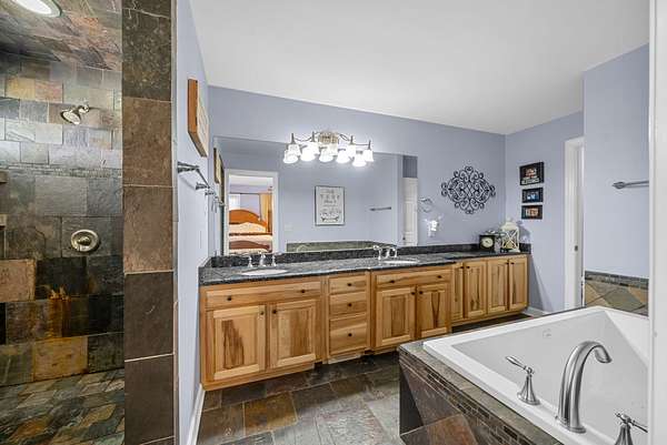 Step inside this charming Cape Cod home and be greeted by a warm and inviting atmosphere. The home features 4 spacious bedrooms and 4 full bathrooms (3361 sq ft). The main floor offers a convenient layout with two bedrooms, while the second level provides two additional bedrooms and a separate living area. Throughout the home, you'll find stunning granite countertops and a wealth of beautifully crafted cabinets in the kitchen, laundry, and primary bathroom. Two distinct living room areas provide ample space for relaxation and entertaining, including a main level room with a large gas fireplace that creates a cozy focal point on chilly evenings. Safe room / tornado shelter in basement.