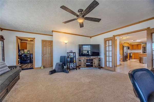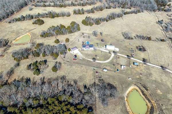 This extraordinary fully fenced 32+ acre property offers the ultimate in privacy, space, and serenity. Surrounded by mature trees and peaceful views in every direction, this rare acreage provides the perfect blend of open land and natural beauty-ideal for recreation, animals, or simply enjoying your own private retreat. With two ponds, expansive green space, and a large outbuilding for equipment, hobbies, or storage, the opportunities here are endless. At the heart of the property sits a perfectly maintained ranch-style home designed to embrace the surrounding landscape. A wrap-around deck overlooks the pool and captures sweeping views of your fenced acreage, creating a seamless indoor-outdoor lifestyle. The addition of a solar roof enhances efficiency while complementing the home's thoughtful design. Inside, you'll find a meticulously cared-for residence filled with natural light and comfort. Every bedroom is generously sized and features walk-in-style closets, offering abundant storage and space for everyone. The spacious primary suite serves as a true retreat, complete with an oversized attached bathroom featuring a whirlpool tub and convenient in-suite laundry. The layout offers two separate living rooms, providing flexibility for gatherings, relaxation, or entertaining. The kitchen is truly an entertainer's dream, boasting abundant counter space, extensive cabinetry, and room to host family and friends with ease. Throughout the entire home, oversized windows frame picturesque views of the quiet, serene land that surrounds you-bringing the beauty of the outdoors in at every turn. If you've been searching for a private, fully fenced acreage property with space to roam and a home that has been lovingly maintained, this one-of-a-kind 32+ acre retreat is ready to welcome you home. Property is 15 minutes from Post and located in Laquey, but has Richland address