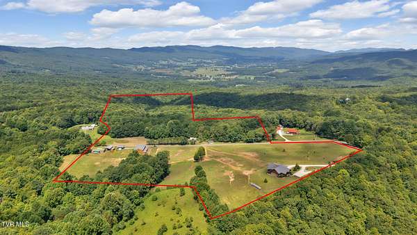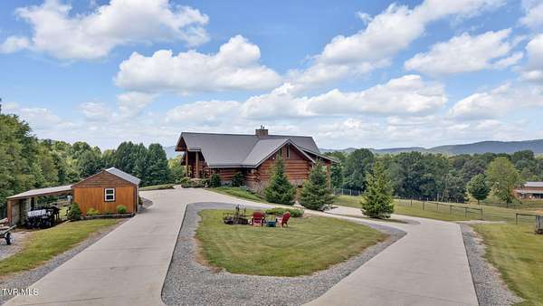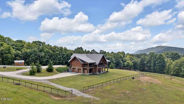 Spectacular Equestrian Mountain Estate on 15 rolling acres with majestic mountain views! Located in the upper corner of Northeast Tennessee, surrounded by thousands of acres of the Cherokee National Forest and the Appalachian Trail that provide access to miles of scenic riding/hiking trails. Every equestrian lover's dream! If more space and housing options are desired, there is an additional 21+ acre tract available for purchase. Included in this acreage is an off-grid log cabin in the woods, a large hay field, spring, riding/walking trails and an historical home that needs a personal touch. Escape the uncertainty of the outside world and reconnect with family, friends and nature in this stunning mountain property. The perfect property for Preppers and those seeking sustainable living! Multiple generators to ensure no loss of power for extended periods, a well that provides an unlimited source of water, and secure rooms that provide a safe haven. The custom luxury log cabin home sourced with large, artful logs offers 4BR/3BA, soaring ceilings, beautiful hardwood floors, stacked stone fireplaces, a chef's kitchen featuring designer granite countertops, high-end appliances, custom crafted cabinetry, and a walk-in pantry. The primary bedroom suite along with another ensuite bedroom is located on the main level. There is a spacious loft landing area that serves as a multi-purpose room for an office, playroom, recreation room, etc. On the lower, terrace level of the home there are two additional bedrooms, great room, exercise room, a safe room and wine cellar. The expansive covered porches provide the perfect setting to absorb the surrounding natural beauty that help begin and end a day. Relax and unwind in the sauna, enjoy amazing sunsets, pastoral views and take in all that life on the farm has to offer. In addition to the main log home, there is a 3BR/1.5BA guest home or caretaker quarters, an off-grid log cabin in the woods, and a state of the art 13-stall barn with electricity, heat, automatic watering system, generator, fenced pasture and a pond. For those who work from home there is Skyview fiber optic internet available to keep you connected. While the property provides serene country living, it is located just minutes from the quaint town of Shady Valley with close proximity to Mountain City, the Tri-Cities area, Abingdon and Boone, NC where all the every day conveniences can be found. Whether an equestrian farm, a private mountain get-away, multi-generational family farm or an income producing vacation home or retreat center, this property will not disappoint. Don't miss your opportunity to be the next owner of this stunning mountain property!