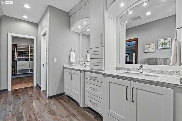 Beautifully developed and maintained South Salem Estate! A truly amazing property that has been meticulously updated and designed to provide a warm, sophisticated living space that just feels like home! This large home has so many amenities that it is not practical name them all, and absolutely a must see for you and your family! This home has a primary suite on the main floor with a beautiful gas fireplace, walk-in closet with shelves and storage, and large luxurious bathroom. There are two bedrooms upstairs with a shared bathroom and a fourth bedroom in the finished basement with a nicely done family den with fireplace and built-in entertainment shelving unit. The kitchen was remodeled into a gourmet style with lots of storage and beautiful wood grain cabinetry with quartz counters. The island provides another perfect place to expand cooking prep, quick meal or just additional counter space for other projects. Each of the three gas fireplaces were recently upgraded and provide both heat & ambiance. This four bedroom, four bath home is complimented greatly with an attached three car garage, a detached two car (built in dog washing station!) plus inside RV parking and a fully furnished 750 sq ft fully permitted guest area with its own living room, bedroom, bathroom and laundry that is not included in the overall square footage but provides a beautiful separate space for guests or relatives to visit. The property includes over 3 acres of pasture with a support garage/shed. In addition, the outdoor living space is enhanced with expansive decks, outdoor patios, above ground pool and a private hot tub with its own patio. This is a must see if you are looking for a home that is in the country but close enough to shopping, dining, and entertainment to be convenient for everyone.