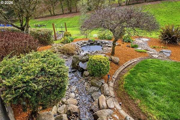 - Above Ground Pool, Fire Pit, Free Standing Hot Tub, Garden, Guest Quarters, Private Road, RV Boat Storage, RV Hookup, RV Parking, Raised Beds, Second Garage, Security Lights, Spa, Sprinkler, Water Feature, Yard