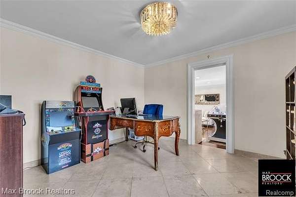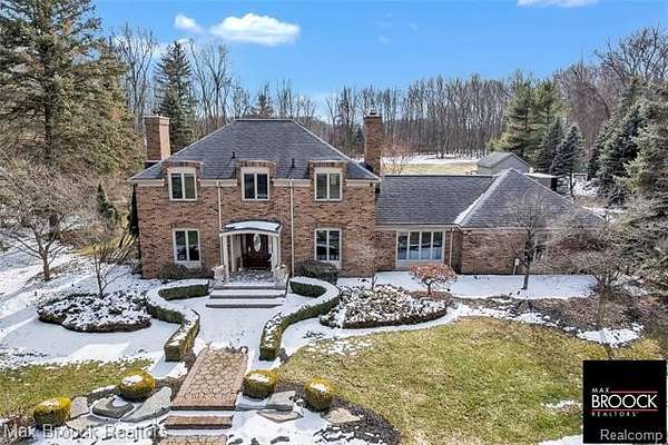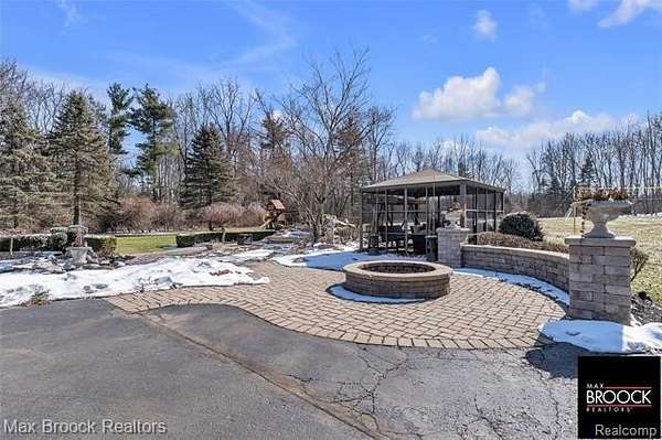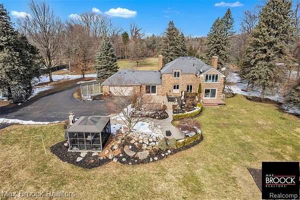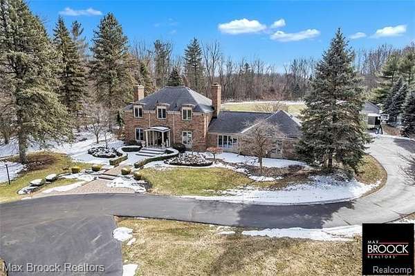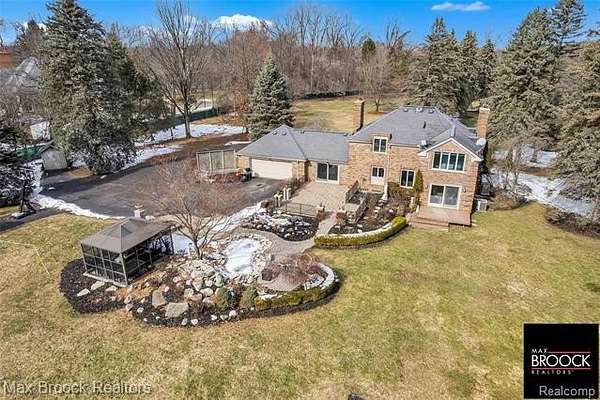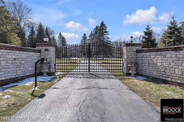 An extraordinary opportunity to own a private gated estate set on five pristine acres in the heart of Farmington Hills, tucked gracefully from the road and enveloped by mature trees, offering a rare blend of seclusion, scale, and everyday convenience. This exceptional residence features over 2,500 square feet of thoughtfully designed living space, including three spacious bedrooms and 2.5 well-appointed baths. Expansive living and entertaining areas are filled with natural light and showcase tranquil views of the surrounding grounds, while the beautifully appointed kitchen serves as the true centerpiece with custom cabinetry, rich wood flooring, luxurious granite countertops, and premium stainless steel appliances, flowing seamlessly into the open living and dining areas anchored by a stunning fireplace, along with a distinguished main-level library. The sweeping acreage presents limitless possibilities for a resort-inspired outdoor retreat, curated gardens, or future expansion, complemented by an attached two-car garage, additional large detached storage garage, and extended driveway, full-house generator, and recently installed A/C unit, hot water heater, and furnace, completing this remarkable estate offering. Lot is splitable, survey attached in documents.