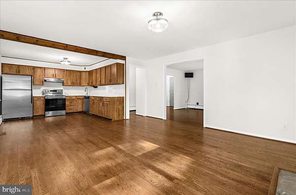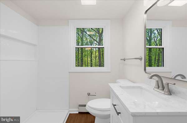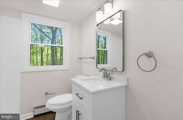 Fully renovated and move-in ready, this brick four-bedroom Cape Cod sits on 1.6 private acres in Windsor Mill with no HOA, no neighbors crowding the fence line, and no compromises on space. New roof. New quartz countertops. Updated bathrooms. Gleaming hardwood floors throughout. The large eat-in kitchen open to the dining room anchored by a wood stove which will actually get used. Two bedrooms and a full bath on the main level. Upstairs, two more bedrooms, both with full headspace, and a second full bath. Step out to the screen porch and you already feel the shift. The fenced rear yard gives you a defined outdoor living space. Beyond the fence, a cleared area with firepit leads into thick woods that run to a creek. This is not a token backyard, it's the real deal. Plenty of storage space in the full basement with bathroom rough-in. Two-car carport. Room to breathe inside and out. Brick construction, new roof, quality renovation throughout, 1.6 acres, two-car carport, full basement with bathroom rough-in. Woods and a creek at the back of your own property. No HOA telling you what to do with any of it. Come see what quiet actually feels like.