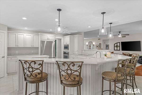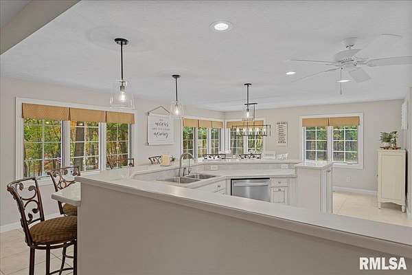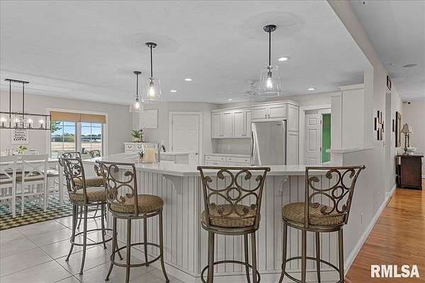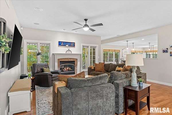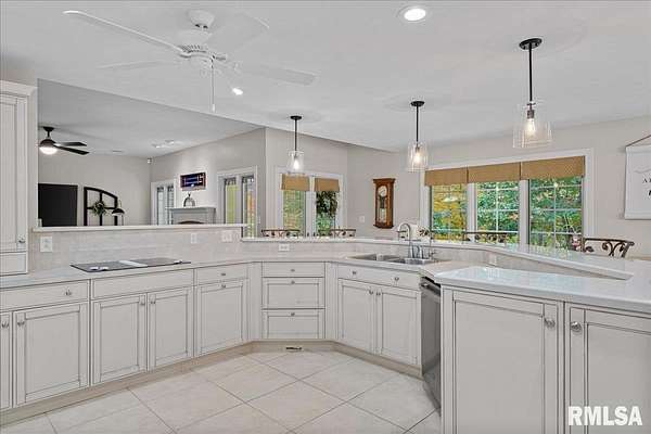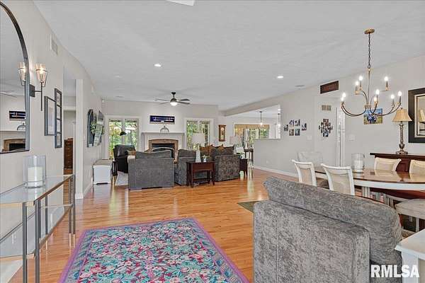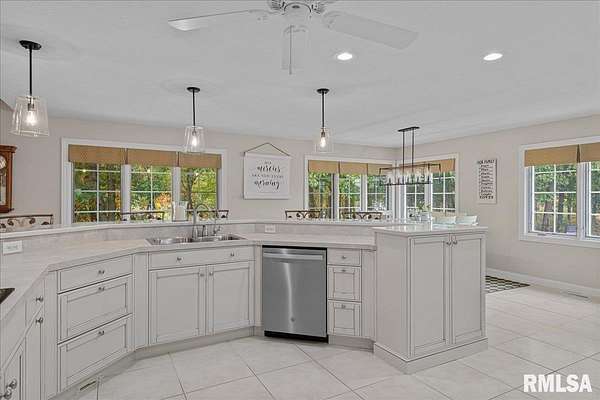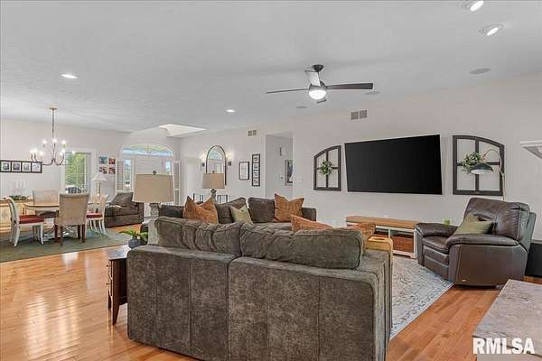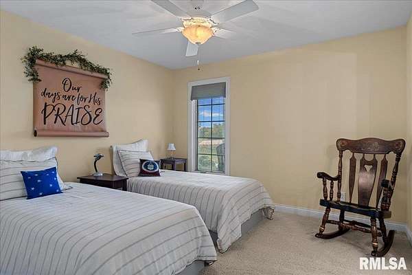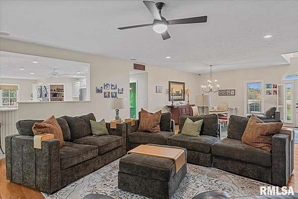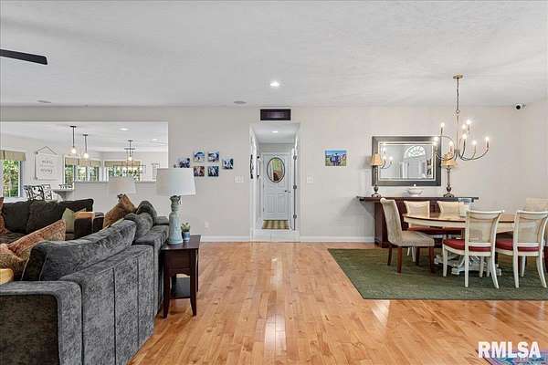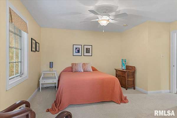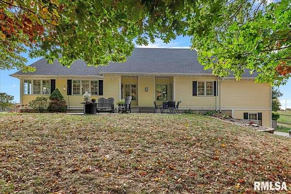 This incredible 1 owner home on 1.62 acres of wooded landscape backs right up to Otter Lake of Macoupin County. Nestled in a rural setting of supreme privacy this fantastic walk-out ranch offers a layout that shines in functionality, pristine care & future potential. Inside, find a bright open floor plan, naturally lit beneath a foyer window & all throughout the main level where hardwood, tall ceilings & loads of big, Pella windows set a scene of pure elegance. Formal living & dining rooms flow seamlessly under striking Marx light fixtures & neutral interior color schemes freshly painted over the last year. An ultra-modern kitchen is filled floor to ceiling w/bright white cabinetry & centered around a massive breakfast bar, w/convenient 1/2 bath nearby. Find high end stainless appliances like a dual wall oven + a SS dishwasher brand new this yr. Contemporary vibes in a master suite include newer countertops & dual vanity while BRs 2&3 share a modern Jack & Jill style bath leaving all 3BR's w/ensuite bathrooms. A walkout LL offers endless possibility for hobbies & future finish, PLUS a full, spacious bathroom is easily accessed from the backyard. Major updates & perks include a 2023 new roof, Geothermal system new this yr, water heater new 2020 PLUS reverse osmosis, gas generator hookup, whole home filtration & central vac systems. Stunning water views, scenic surroundings & short commutes to Springfield & Carlinville create this homestead in Palmyra that's truly 1 of a kind!