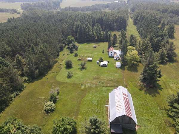 Located in Alcona County just outside of Barton City sits this cozy farmhouse on 160 acres! This property has served as a hunting getaway to the same family for almost 60 years. The home has been partially remodeled with a few of the rooms still needing some updating. The kitchen features exposed log that was from the original build in the 1880s along with a vintage Heartland Oval wood burning stove. Water is supplied by a traditional deep well and also has a hand pump for backup. The heat source is baseboard through an oil-fired boiler along with a wood fireplace. Outside you will find some sheds, wellhouse, chicken coup and old farm barn. The land has unmatched diversity with a pond & a wetland area where the Buff Creek flows through, approximately 10 acres total over several different fields that could possibly be farmed or used for food plots, rolling wooded hills with standing timber that could possibly be harvested for some additional income along with various apple trees scattered around the property. There are established trails leading you around for great access to all parts. Located just down the road from Jewell Lake additional recreation options. Call today for more information. Maps contained on our sites are there to simply depict the over all layout or shape of a given property and show what it looks like from an aerial view. These maps are neither a legally recorded map, or any type of a legal survey and should never be used as such. Also "Acreage" amounts are displayed as according to the information we have obtained through local government and are in no way guaranteed or warranted to be exact