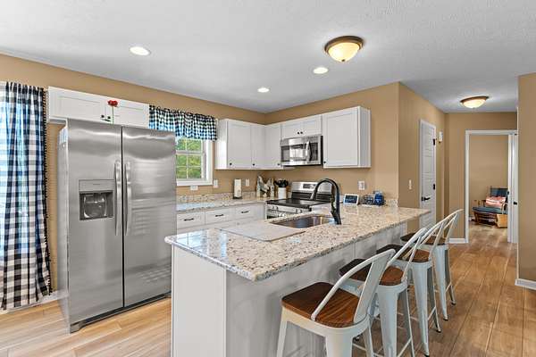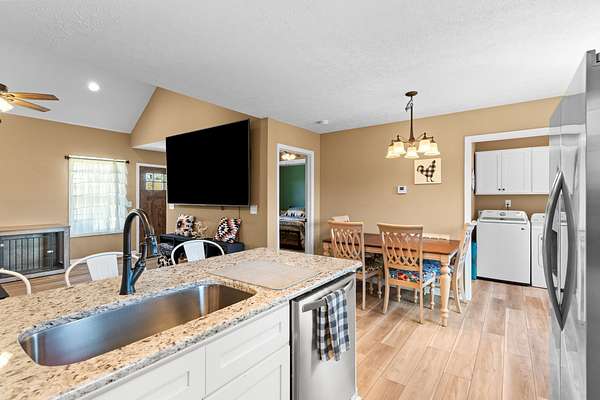 This beautifully maintained 3-bedroom, 2-bath home offers 1,250 sq. ft. of thoughtfully designed living space on a 1.86-acre lot. Built just one year ago, it feels like new -- featuring an open floor plan, custom cabinetry, granite countertops, luxury vinyl flooring throughout, and a full suite of stainless steel appliances.