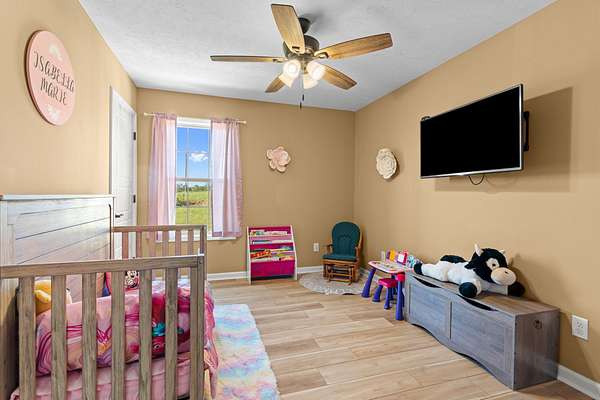 Step outside to your spacious backyard, complete with a concrete fire pit, perfect for relaxing evenings or entertaining friends. Surrounded by peaceful scenery, this home blends modern living with tranquil surroundings.