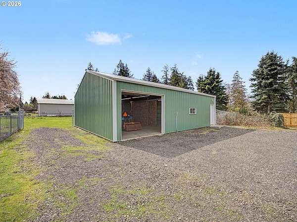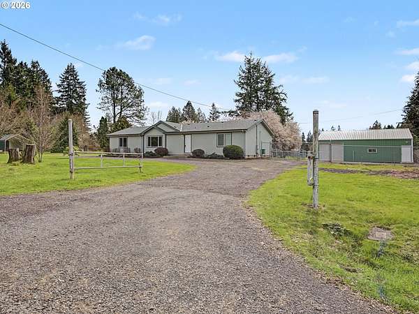 Location, Location, Location! come see this exceptionally maintained MFH on just under 2 acres of beautiful & useable land. Located in Boring with Centralized access to Happy Valley, Clackamas, Gresham, Portland, Sandy and Mt Hoods abundance of outdoor activities. Primary Suite with walk-in closet, updated bathroom w/large soak tub, fresh paint, new vanity, sink & toilet. 2nd bedroom also offers its own private updated bathroom for those with multi-generational living needs. Home offers Vaulted Ceilings and hard surface floors throughout. Spacious Kitchen has Pantry, Coffee bar and ample storage with large dining area. Stainless Refrigerator and Washer and Dryer included. Out the back under the Covered patio or through the Electric Gate you'll find a very nice 30'x 36 Metal Pole barn style shop with power and concrete floors. Large sliding barn doors allows you to separate the bays in shop. 2 metal exterior carports to keep your toys dry. Large fenced area in back to keep the little ones and your furry friends safe. This home and property offer's something for everyone. great opportunity to work from home.