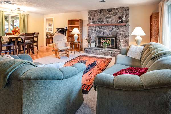 Discover your own private retreat on 11.5 beautiful acres along Pleasant Valley Rd in Sweet Home, OR. This 3-bedroom, 2-bathroom, 1,934 sq ft home offers abundant space and privacy. The primary suite features an ensuite, while the rest of the home includes vinyl windows and a cozy wood-burning fireplace. A spacious family room adds comfort, and the back-up generator ensures peace of mind. Outside, there's ample space for all your toys, animals, room to add a shop, plus 2 RV clean-outs. Enjoy the serene year round spring feed pond, private well and septic system, and a large 20x20 shed for extra storage. This partially fenced property is a haven for those seeking natural beauty, privacy, and flexibility. Don't miss this opportunity to own your piece of paradise! Schedule your private showing today!