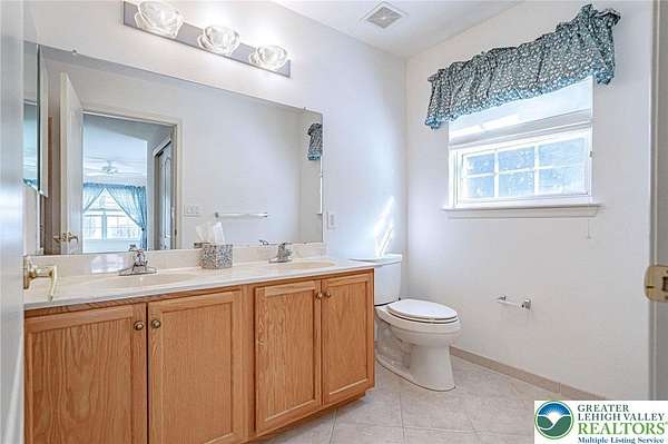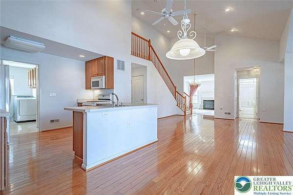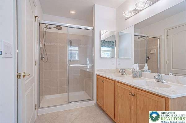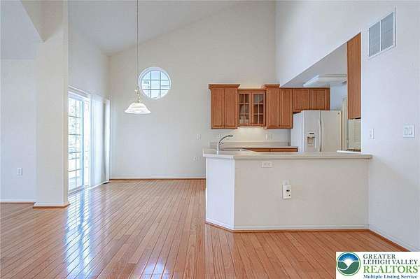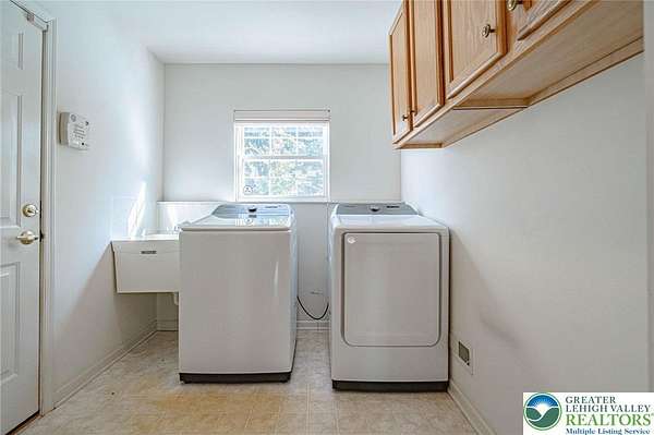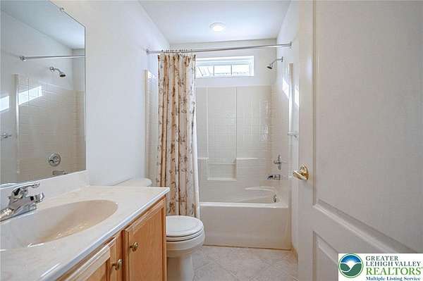 If you lived in this lovely home today, you would not be shoveling snow. The +55 community located in Lower Macungie called Legacy Oaks provides all of the conveniences of no maintenance living. Bright with natural sunlight, this home has a warm inviting feel and the warmth of hardwood. The foyer leads to a large space with vaulted ceiling that offers a dining area and separate living room with large picture window. The kitchen off of the dining area has a lovely breakfast area and an abundance of cabinets and counterspace. The private den/office has a gas fireplace flanked by windows to let in the light from southern exposure. There is a private guest bed and bath next to the den. The primary bed offers a spacious room, 2 walk-in closets, a double vanity sink and large tile shower with bench seat. A laundry/mud room with garage access completes the first level. The 2nd level has a spacious bedroom, full bath, large closet and a storage area. The unfinished basement is the full footprint of the house and has built-in shelving, water softener and sump pump. The community offers clubhouse, pool, sports areas and is a walkable neighborhood. No more lawn maintenance or roof maintenance. This is a lovely carefree living community located near shopping, healthcare, restaurants and major routes and is move in ready.