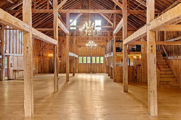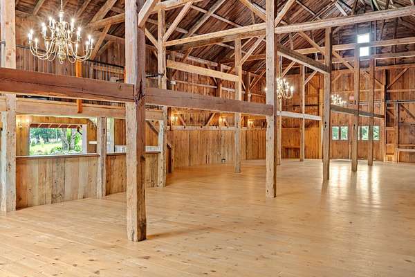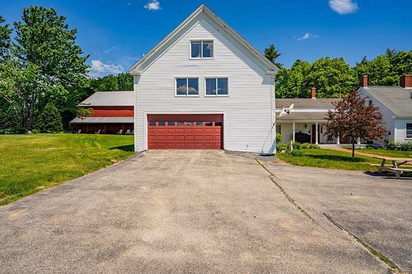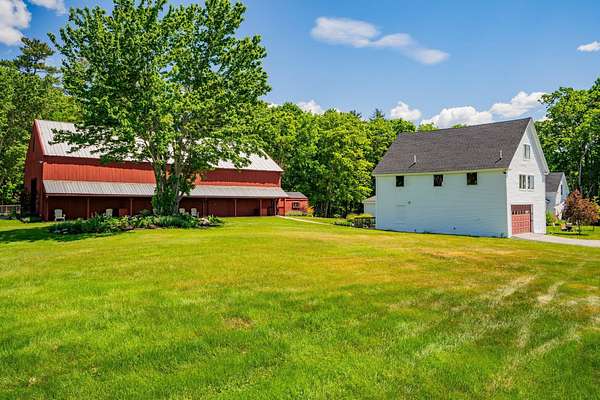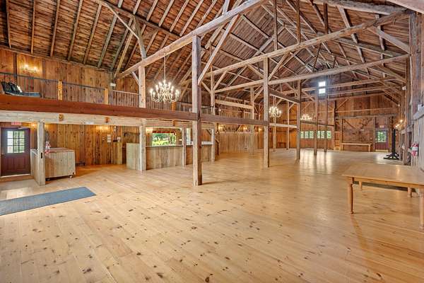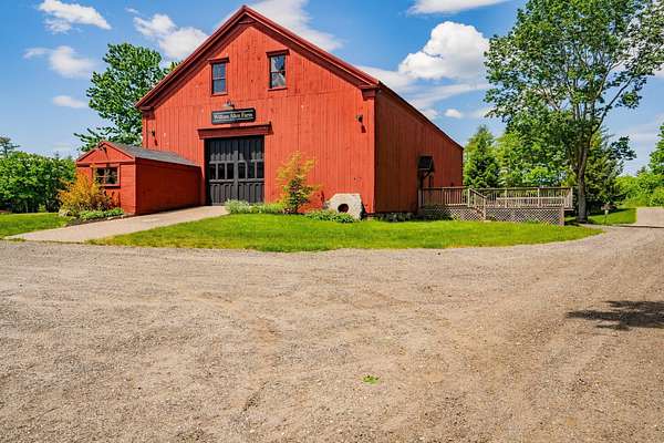 Step into the classic New England charm of William Allen Farm, a breathtaking estate set on just over 52 acres of rolling fields, wooded trails, and a serene heart-shaped pond. Located just 1.5 miles from Pineland Farms and 20 minutes from Portland, this property offers a rare opportunity to create the dream you've always envisionedaEUR"whether as a private estate, elegant event venue, or distinguished equestrian property. The 1880 farmhouse, nearly 5,000 square feet, blends historic character with modern comforts. It features six spacious bedrooms, three bathrooms, a newly renovated kitchen with brand-new appliances, a formal dining room, and an inviting living room with a cozy wood stove. Additional highlights include a dedicated laundry room with a new washer and dryer, a walk-in attic, a large mudroom, and freshly painted interiors. For added luxury there's a private suite with a separate entrance that offers a living room, bedroom, and full bath, ideal as a bridal suite, in-law apartment, or guest retreat. A three-story attached garage provides extensive storage and potential for extra living space or rental opportunities. At the heart of the property stands the historic event barn, a stunning 1810 timber-framed masterpiece that has hosted countless celebrations. This extraordinary space accommodates up to 175 guests, with soaring post-and-beam architecture, glowing chandeliers, and a seamless blend of rustic beauty and refined elegance. Beyond its role as a celebrated event destination, William Allen Farm offers boundless potential. Its expansive acreage and scenic landscape make it an ideal setting for equestrian pursuits, with space for paddocks, riding trails, and barn conversion options to suit the most discerning horse enthusiasts. Whether you seek a working farm, a private countryside sanctuary, or an income-generating estate, the possibilities here are endless. A storybook setting-William Allen Farm invites you to bring your vision to life!