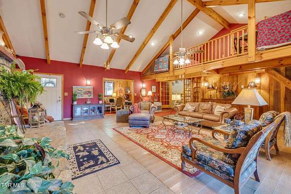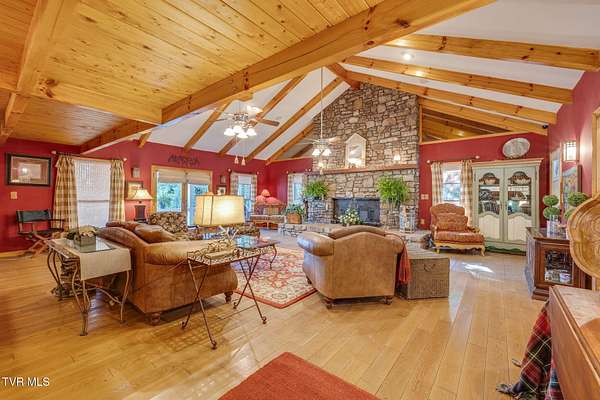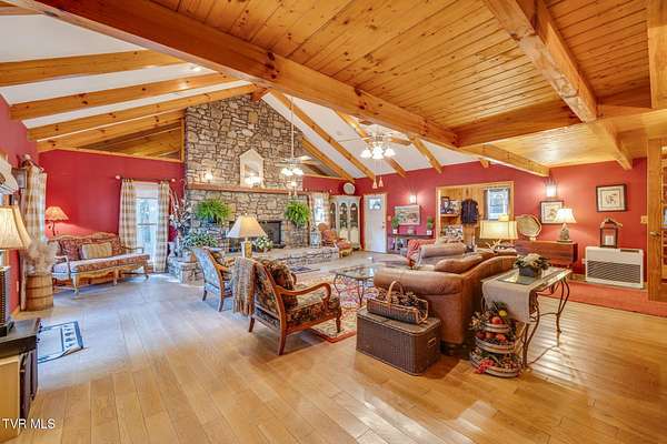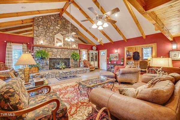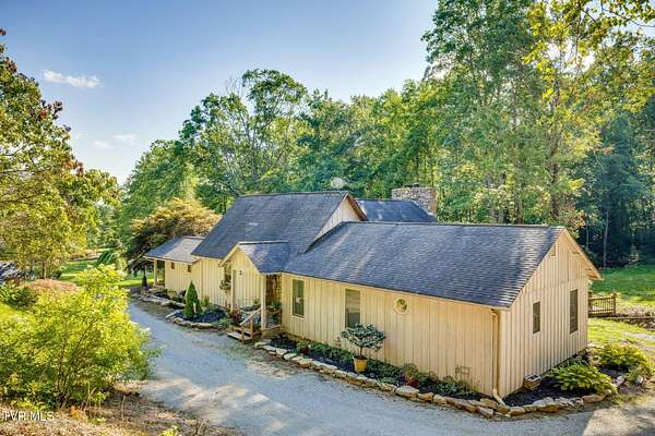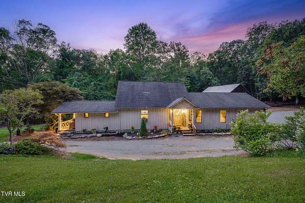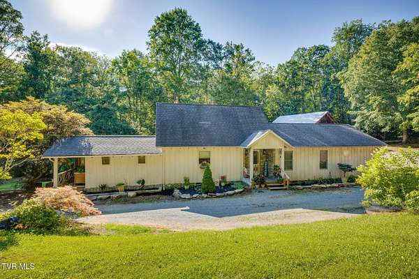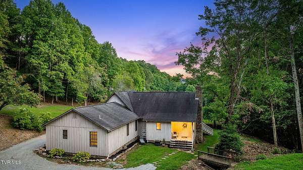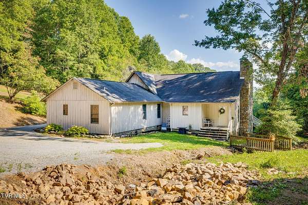 Welcome to a property that perfectly envelopes the natural beauty of East Tennessee in the most magnetic way. Passing through the stone gates onto the 78 acre property, you are met with rolling pastureland, the shade of the trees, and the sounds of one of four bubbling creeks that winds its way through the entire estate. Opportunity for development abounds with the unique amount of gorgeous building sites, framed by mountain views. With 3/4 of a mile of the property bordering the Cherokee National Forest, seclusion and natural splendor is found even beyond your personal haven. Explore the property with pathways and access to the Appalachian Trail, enjoy an expansive garden, and take advantage of the area already set up for beekeeping. Blueberry bushes, blackberries, chestnut trees, holly trees, and mountain laurel are just a few indigenous species found. Envision a magnificent venue or equestrian paradise coming to life. Nestled at the end of the driveway is a peaceful retreat whose walls contain wood and stone that was harvested from the property itself. This home is pleasing in every way for your desire to have a custom lodge that compliments the property it sits upon so perfectly. With details like hardwoods running throughout, soaring vaulted ceilings, a stunning wood-burning stone fireplace that is the centerpiece of the home, domestically harvested wood accents throughout, among many other details, this home delights in so many ways. The spacious primary bedroom and en suite primary bathroom are found on the main level along with expansive custom kitchen, laundry room, dining room, second den that could be converted to a third bedroom, and full bathroom. A loft overlooks the living room and a second bedroom is found upstairs. Outside you will enjoy the natural sounds of the rippling creek and enjoy a well-fed fountain off your covered porch. An oversized barn offers plenty of usability and southern charm. Also available is an adjacent property on 274 Bulldog Hollow (MLS 9983536) that would make a fantastic home for family or guests! This property is a rare gem and must be experienced!