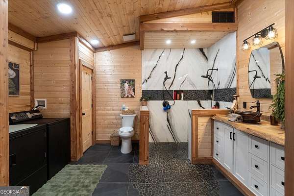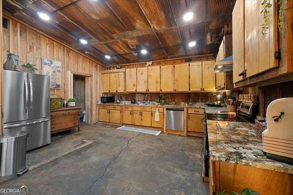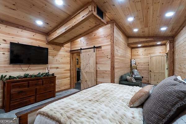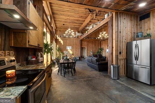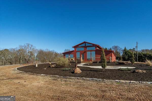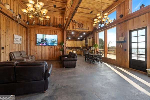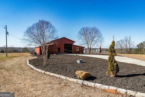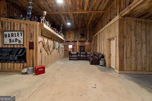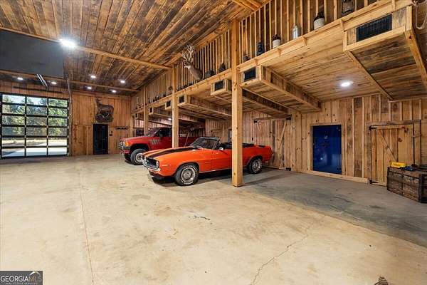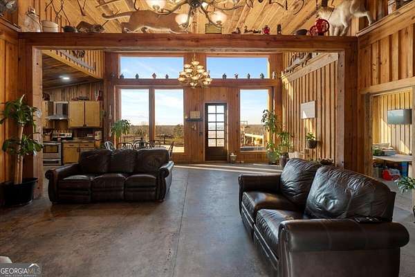Luxury Barndomansion Retreat Cinematic Countryside Living Set behind a private drive and perched high on a gentle hill, and boasting over 7000 sqft, this luxury barndominium is more like a Barndomansion and commands breathtaking views over five fully fenced, picturesque acres-evoking the iconic serenity and rugged elegance of the Yellowstone homestead. Thoughtfully designed with refined rustic finishes, the home blends elevated craftsmanship with warm, natural textures throughout. Inside, the open-concept living space is anchored by exotic granite countertops and striking custom details, while the spa-inspired bath features real live-edge wood countertops and a stunning walk-in, two-head tiled shower. Every finish was selected to create a sense of timeless luxury with a modern ranch aesthetic including pine, oak beam, tongue and groove with red cedar trim. The primary suite closet is western cedar tongue and groove, plus there are 2 built-in safes with a small hidden closet. Step outside to an oversized deck ideal for entertaining or quiet evenings overlooking rolling pastureland, mature landscaping, and wide-open skies. The homesite offers privacy, elevation, and panoramic views-perfect for those seeking space, beauty, and a true retreat setting. Whether envisioned as a refined primary residence, weekend escape, or legacy property, this exceptional barndomansion delivers privacy, craftsmanship, and cinematic countryside living-all in one unforgettable setting.