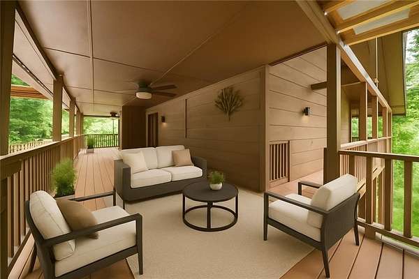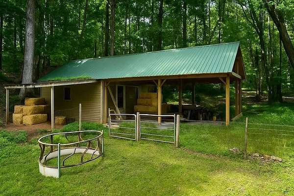 MOTIVATED SELLER- MEDICALLY MOTIVATED! Welcome to your unrestricted, fully fenced 3.87-acre mini farm and income-producing retreat in the heart of Ellijay! This rare property offers a stocked spring-fed pond, over 395 ft of bold creek frontage, open pastureland, wooded privacy, and gated entry. The main home is a 2,552 sq ft custom-built cabin (2007) featuring rustic chink siding, soaring ceilings, a wood-burning fireplace, and a wrap-around porch overlooking the pond and pasture. Inside, the main level offers a luxurious owner's suite with ensuite bath, guest half bath, and an open-concept kitchen with stainless appliances, gas stove, and large island. The finished basement adds 3 bedrooms, 2 full bathrooms, and a spacious second living area with tiled showers, Pergo flooring, and private walk-out access. Modern upgrades include a new roof (2023), new HVAC & heat pump (2023), updated appliances, and whole-house generator. Built with 6" insulated walls and a poured concrete foundation, this home is designed for comfort, energy efficiency, and long-term durability. The property also includes a 24x24 barn with two 1-bedroom, 1-bath rental apartments currently producing $1,675/month, plus a carport and outbuilding for storage or equipment. With fully fenced pasture (currently home to two goats, included with sale!), space for livestock, gardening, or expansion, and the freedom of no HOA or restrictions, this property offers the perfect balance of luxury mountain living, income opportunity, and endless potential. MOTIVATED SELLER- MEDICALLY MOTIVATED!