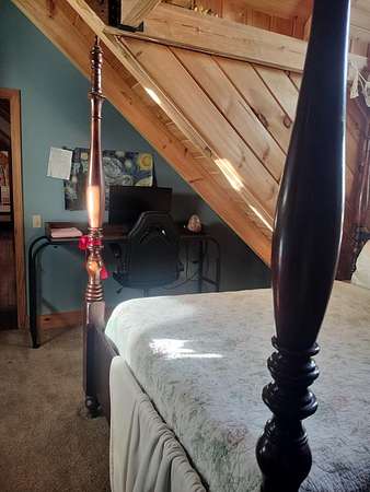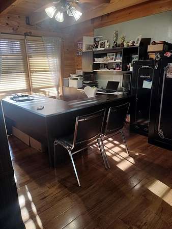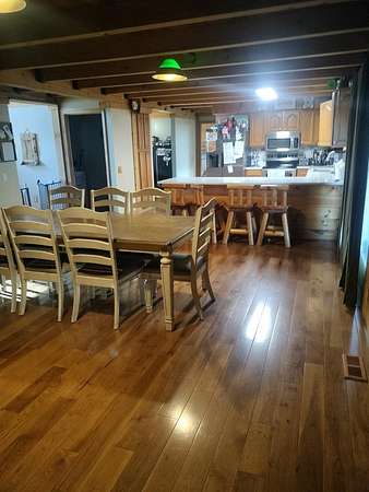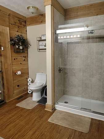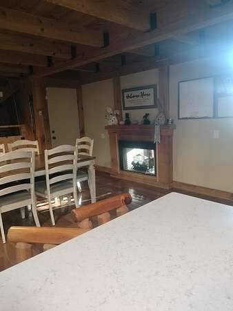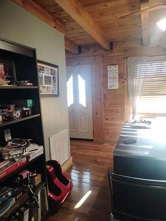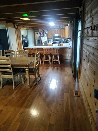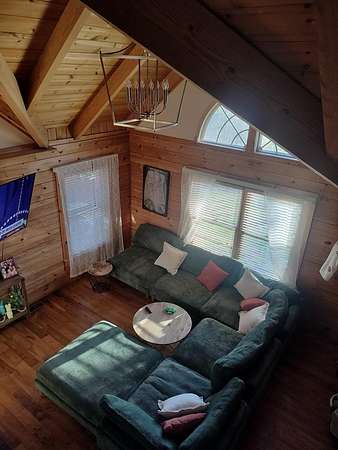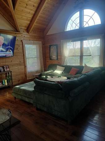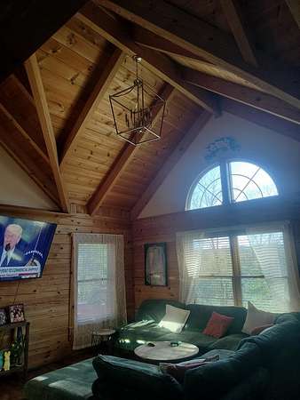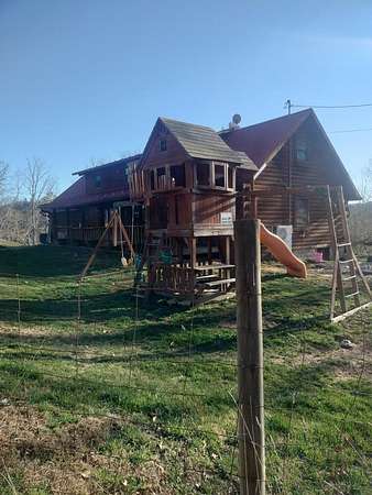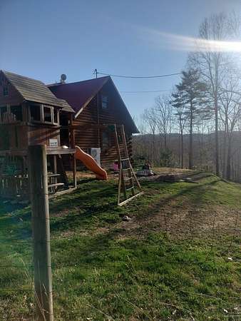 INCREDIBLE CONTEMPORARY LOG HOME. BOASTS 5 BEDROOMS AND 2.5 BATHS. OPEN FLOOR PLAN WITH KITCHEN AND DINING OPEN. FIREPLACE BETWEEN DINING AND LIVING AREAS. CATHEDRAL CEILINGS WITH LOTS OF NATURAL LIGHT. PLENTY OF STORAGE IN EACH ROOM. LARGE MASTER WITH A MASTER BATH WITH LAUNDRY AND EXIT ON TO THE BACK DECK. WALK-IN CLOSET. UPSTAIRS HAS AN ADDITIONAL COMMON AREA BETWEEN THE BEDROOMS. THE UPSTAIRS BATH WITH A LAUNDRY CHUTE THAT BRING THE CLOTHES TO THE LAUNDRY. 2 CAR GARAGE WITH WORK AREA. GREAT FOR THE OUTDOOR ENTHUSIAST WITH A SMALL BARN AND A POND. LARGE COVERED BACK DECK FOR GRILLING AND ENTERTAINMENT. FRONT PORCH WITH MOUNTAIN VIEWS OF THE BRUSH CREEK GORGE.