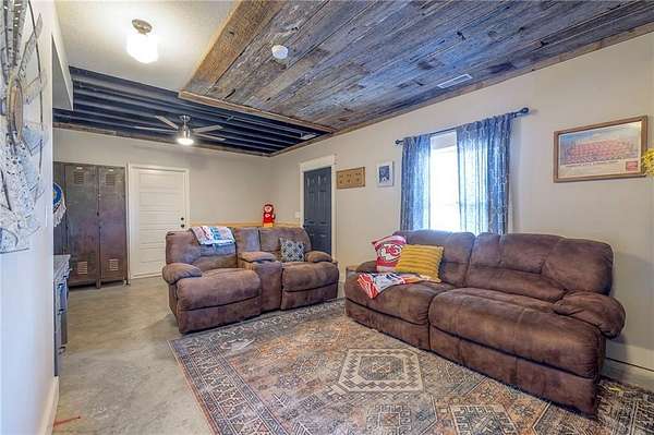 Escape to your own private paradise! This secluded 12-acre retreat offers the perfect blend of country serenity and modern convenience. The gorgeous acreage is a nature lover's dream, featuring a private pond, mature trees, and abundant wildlife, providing endless room to roam and explore. The charming home features 2 bedrooms, 2 full baths, and additional flexible space perfect for a home office or potential third sleeping area. A spacious 40x30 outbuilding is ready for your workshop, hobbies, or equipment storage. Spend your evenings gathered around the custom-built fire pit or tending to the amazing chicken coop that would make any homesteader proud. While offering complete privacy, this property is surprisingly close to city amenities, providing the best of both worlds. This is a rare find for anyone seeking a peaceful and private lifestyle.