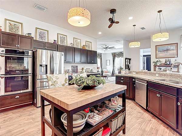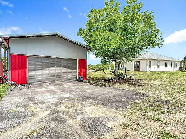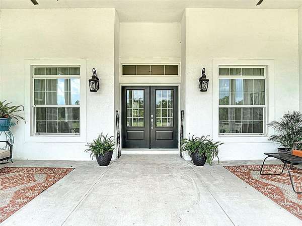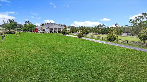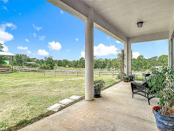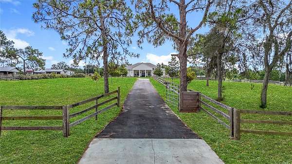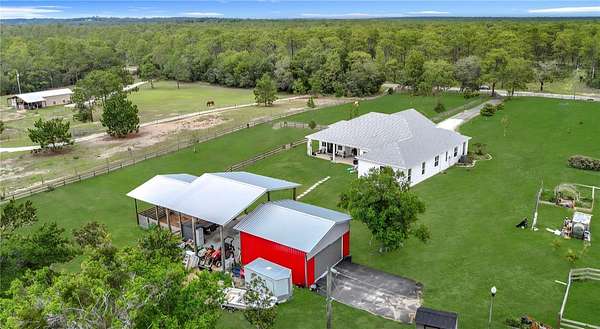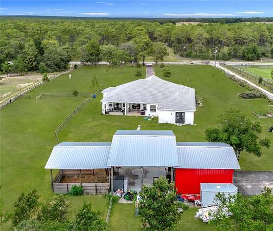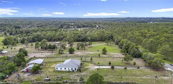 Beautiful Custom Home Built in 2021. 2.5 pristine acres directly connected to 20000 Acres of the Withlacoochee State Forest in the highly sought after rural community. Many upgrades to this home. This is a 3 bedroom / 3 bathroom custom Block home with over 3000 sq feet of luxury living! The stunning front porch captures you the moment you arrive with an elegant well thought out split floor plan. The main house showcases 10 ft ceilings throughout with 11 ft Tre' ceilings, a large 5pc bathroom with his and her private sinks, walk-in shower and separate walk-in closets! This home has 8 foot custom French doors all around the home for amazing views from every angle and the chef's kitchen will not disappoint with a regular oven plus double oven and wine cooler built right in. Office with private entrance. There is an air tight walk around full attic. Home has exterior concrete walls with foamed R11 rating throughout which makes for low electric bills. There is an open 2 horse stall, measuring 18x24 as well as a 24x36 open barn with concrete floors and extra supports that were planned for a 2nd floor unit. The 2 car garage is connected for easy access which has a hot water heater and 50 amp hookup ...The property has 2 separate gated entry points. The main gate access has an automatic security opener and a magnolia tree lined drive. The property is fenced and cross fenced, has a producing garden, 5 fruit tree orchard, and the 2nd gate access goes directly to the garage and barn area. So many upgrades in this custom home to list. Did I mention the Paved road that goes directly to the property? Also, Easy Access to I75 to Tampa or North to the World Renowned Newly built Ocala Equestrian Center. Property is located DIRECTLY across from 20000 acres of Withlacoochee State Forest. Take your horses for a nice stroll! Property is just down the road from the popular Fannin Hill Farm. Come see this slice of heaven and make it your own.