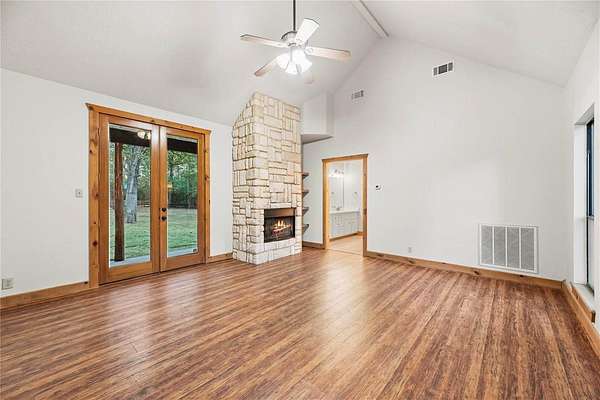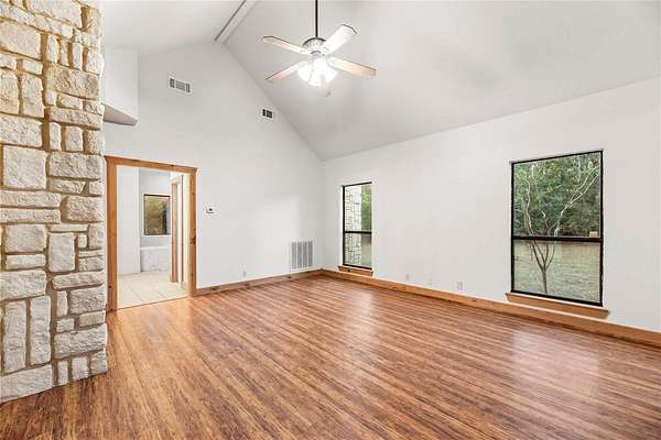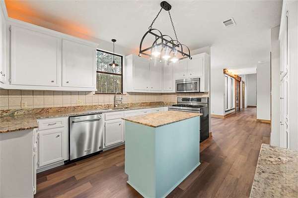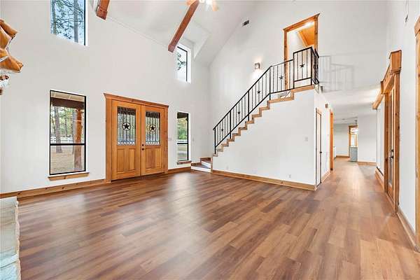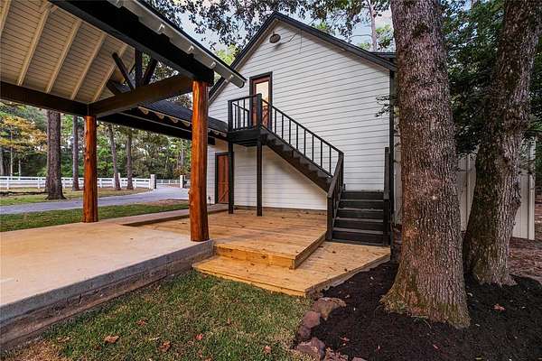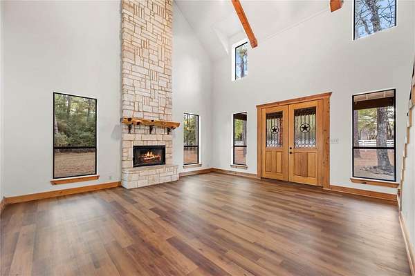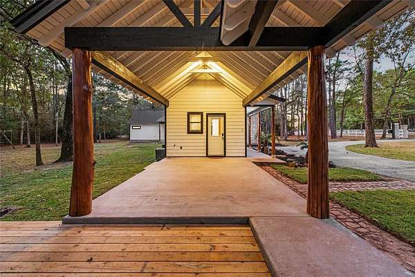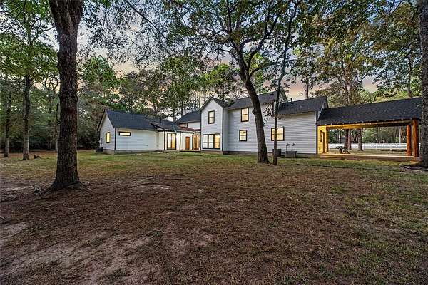Bring your family and your horses home to this unique hill country style home in the coveted Indigo Lake Estates! 4 bedroom, 4 full & 2 half bath, 3 car garage with guest apartment and 2 bonus rooms sits on 2.78 acres with plenty of room for family, entertaining, and horses. Recent updates include roof(2025), interior and exterior paint(2025), A/C(2024), & luxury vinyl plank flooring(2025). Private primary bedroom feature beautiful stone fireplace, jetted tub, separate shower, and patio access. Living area features stunning 2-story fireplace with lots of natural lighting, vaulted ceiling with beams. Spend your down time swimming, boating, skiing, and fishing at the 160 acre lake, picnics at the beach park with pavilion, or riding through the scenic riding trails and arena. Country living with minimal commute to Cypress, Tomball, The Woodlands, and Houston.