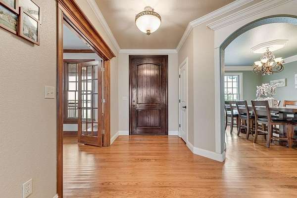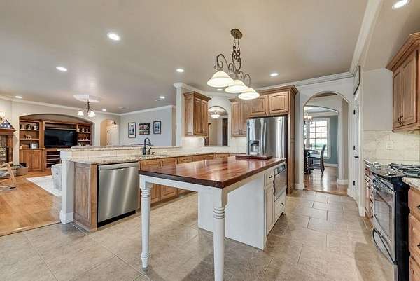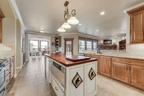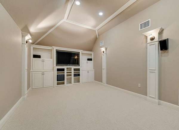 - Built-In Features, Cable TV Available, Central Vacuum, Chandelier, Decorative Lighting, Double Vanity, Eat-In Kitchen, Flat Screen Wiring, Granite Counters, In-Law Suite Floorplan, Kitchen Island, Natural Woodwork, Open Floorplan, Pantry, Vaulted Ceiling(s), Wainscoting, Walk-In Closet(s)