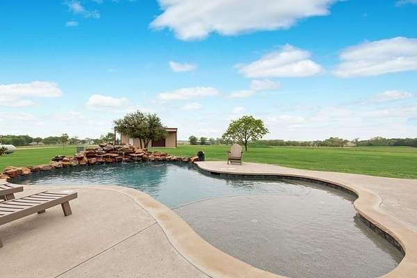 Enjoy FISHING, FOUR-WHEELING, & FANTASTIC SUNSETS at your very own HOME!! This AMAZING property is beautifully situated on 49+ fenced acres and features 2 stocked ponds (Bass & Perch), a 40x40 Metal Barn, a 20x50 RV Cover with full hookups, an 18,000 gallon in-ground pool with a waterfall feature, and a STUNNING 4,089 square foot 4 bedroom-4 bathroom HOME. The WOW FACTORS start at the front exterior of the house with the stacked stone accents, the Copper window awning and the covered porch where you can sit, relax & enjoy pond views. Once inside you will be instantly impressed with custom features including crown molding, built-in cabinetry, & reclaimed solid wood floors. A generous dining room and private study are located off the welcoming entryway. An open concept layout then leads to the cozy living room with a stone fireplace and an adjoining chef's kitchen that offers 42 inch cabinets, granite countertops, tumbled marble backsplash, gas range and a custom island with a Mesquite Wood countertop. Just off the kitchen is a massive sunroom with tons of windows that overlook the property's acreage. The primary bedroom is located downstairs and includes crown molding and plush carpet. The primary bathroom is a spa-like retreat with a jetted tub, separate vanities, custom shower and an oversized closet with built-in cabinetry. Upstairs the wow factors continue with a dedicated media room, large office space and oversized bedrooms. The outside spaces are just as impressive and include a fabulous Cabana with fireplace, fishing pier, and a new architectural shingle roof. The 3-car garage has epoxy floors and plenty of storage while the 40x40 barn has 15' covered extensions on either side. There is also an AG Exemption for hay cutting. Conveniently located in Waxahachie and only minutes from Dallas, this ONE-OF-A-KIND property provides a Rare Opportunity to live the country life on your own peaceful ranch but still be close enough to enjoy the city life when you want to!