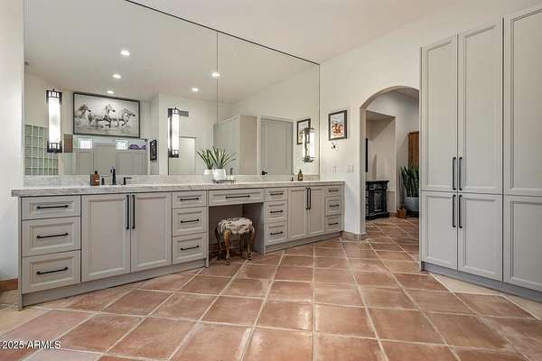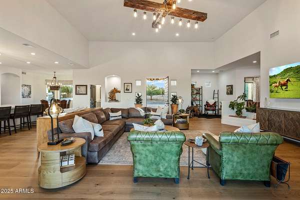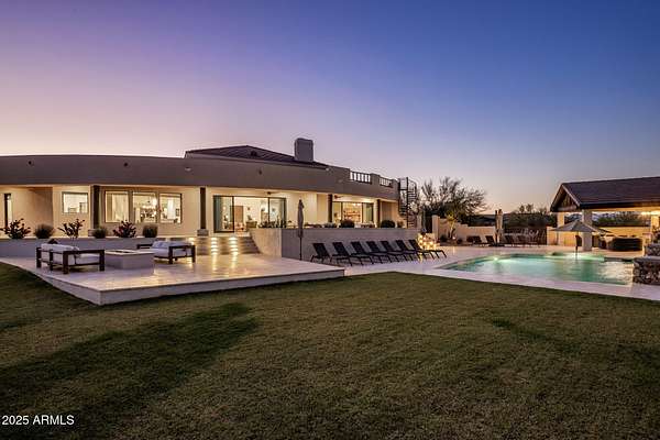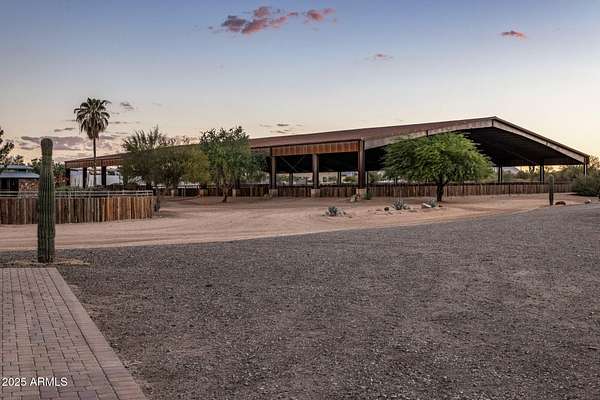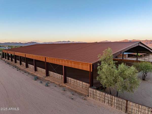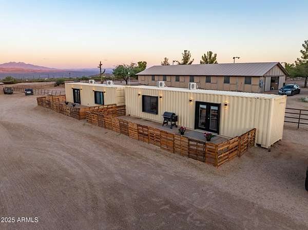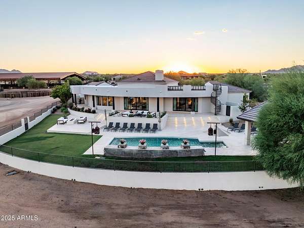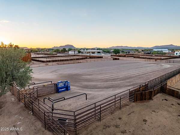 Sitting on nearly 20 acres with stunning mountain views, this equestrian estate exudes elegance and functionality. The recently remodeled main home features a timeless modern southwest design with high-end finishes throughout, 2 master suites, soaring ceilings, and abundant natural light. Expansive glass sliders open to a resort-style backyard oasis & roof deck. Overlooking exceptional equestrian facilities, perfect for a private ranch or boarding/training operation. New arena footing in both the outdoor roping (150x240) arena and covered (140x240) arena. 24-stall main barn w/2 tack rooms, casita, lounge, 4-stall mare motel, and multiple large turnouts. 2 new Alterna Container homes provide staff quarters, plus 2 RV hook-ups on this fully fenced property. Prime location, all paved roads.