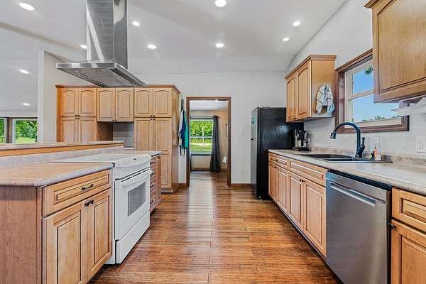 Beautifully redone and ready to move in! Subject To final Survey On 2 acres this 4 bedroom or 3 bedroom with Den. Large open Kitchen into Great Room and Dining space. Great Room and Dining completely redone in 2015 with new duct work & 200 amp service with whole home surge suppressor. Rear Deck. 2.5 Car detached garage with concrete floor and 50-AMP electric. Updates include: New open concept Kitchen with new refrigerator, dishwasher and Stainless Range Hood that vents to the outdoors! Drexel Metals Steel Roof 2019, Security System 2023, Windows 2016, Pressure Tank 2021, Updated Hardwood Flooring, Carpet, Furnace 2011, A/C 2016, Septic Aeration & Risers 2025. Water Softener Owned. Additional 8.4 acres available with large 70x40 Barn with Horse Stalls & Arena and fenced pasture See MLS#9067819. See Agent to Agent Remarks.