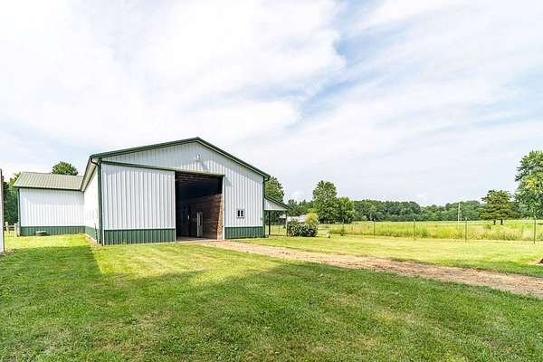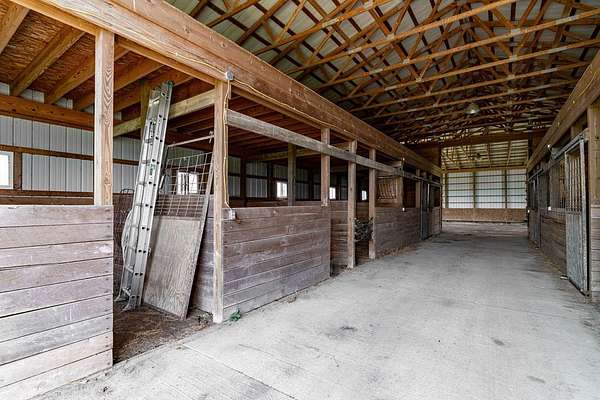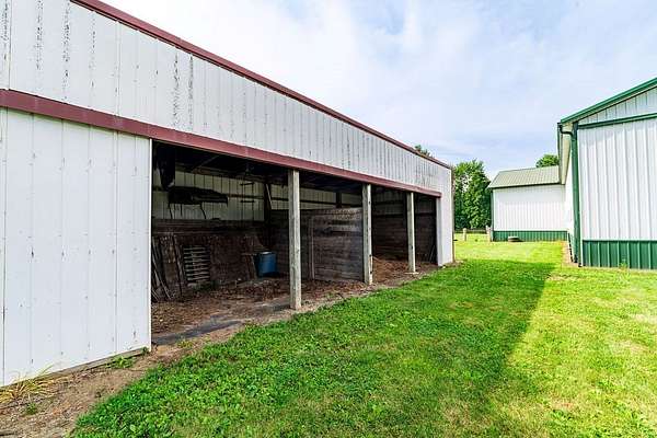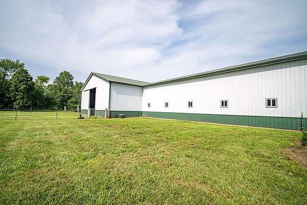 8.4 Acres (subject to final survey and split) can be purchased with MLS#9067820. 3 Buildings: Built in 1995 this 50x70 & 57x35 Horse Barn with 6 Stall, 2 hay lofts, tack room and open arena, Concrete Walk Ways and 4 Fenced Pasture Areas with Electric Fence; Shed with Concrete Paddock Hog Barn built in 1998; Machine Shed built in 2001. About 400+ft of woods in rear. There is currently 4 water hydrants that will need to be disconnected should the property not be sold with the house. Water and electric available at each building.