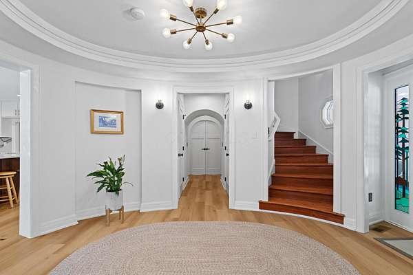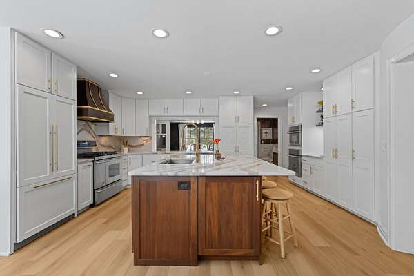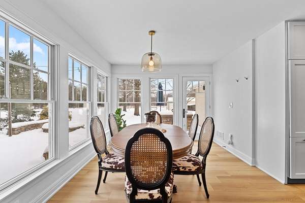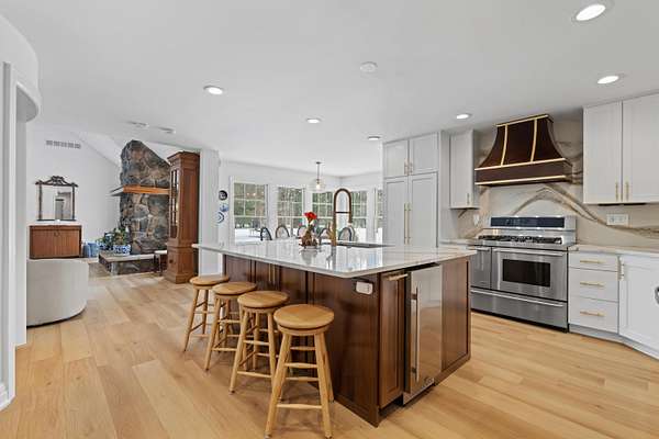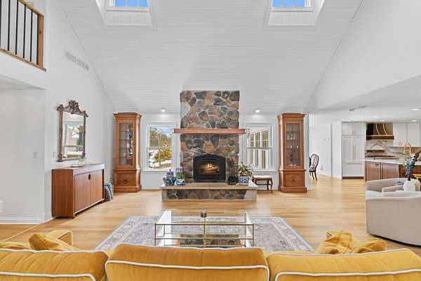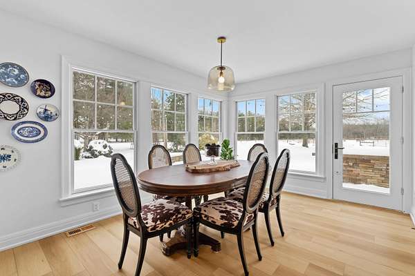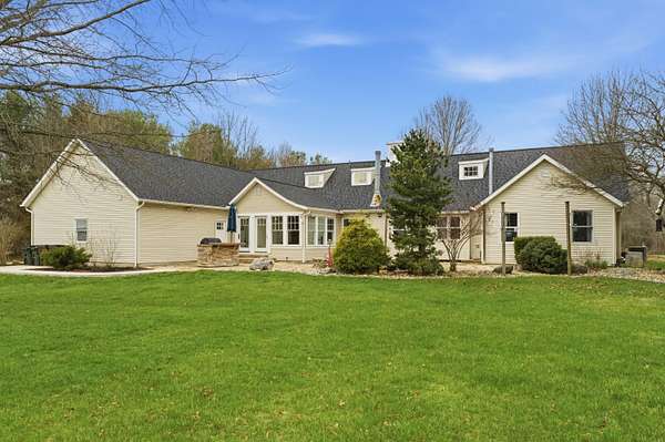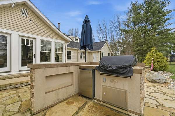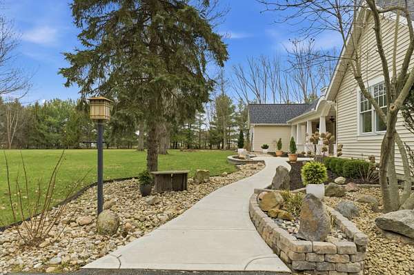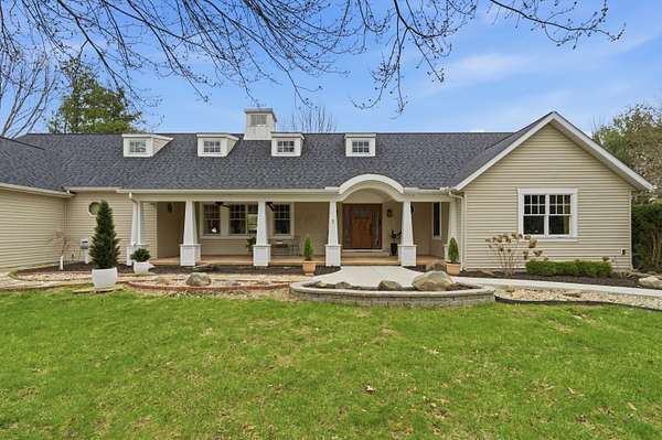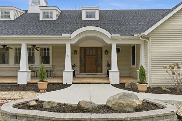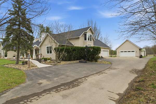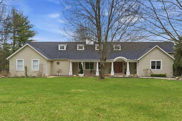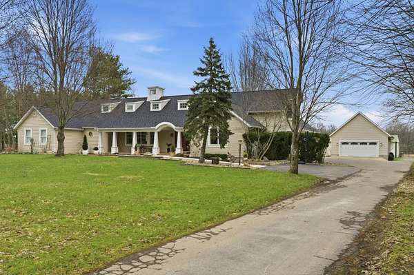 Welcome to an exceptional 8.6 acre private retreat in the village of Galena - an elegant country compound thoughtfully upgraded for modern living & entertaining. Set back & surrounded by mature trees, the property combines equestrian capability with refined interior finishes & flexible living spaces. The grounds feature a 30' * 50' barn with water & electricity & three fenced pastures (additional pastures could easily be added), perfect for horses & other animals. The parcel offers ample room to add a second residence for a multigenerational family compound or guest house. The 1.5story Cape Cod home (attached 2 car garage plus a 2 car detached garage) is arranged for both privacy & flow. The owner's suite occupies its own wing, while formal dining, bright morning room off the kitchen, dedicated office, craft room, loft with bonus room, & generous living areas provide abundant options for work, hobbies & entertaining. A partial basement is finished as a wellappointed workshop. Comfort & convenience are enhanced by a whole house Generac, Delco water, highspeed internet, builtin BBQ, & a stone firepit. No detail was overlooked in the recent interior refresh: whole home painting, upgraded lighting, & brand new carpet with warranty. The main floor has updated flooring throughout & a wood burning stove for cozy evenings. The kitchen is a showpiece - a stunning remodel featuring Cambria quartz countertops & matching backsplash, new island, high-end paint restoration on cabinetry, new hardware & fixtures, professional ZLine hood with upgraded exhaust, new Fisher & Paykel refrigerator, builtin oven & convection microwave, & new drawer microwave. Firstfloor bathrooms, loft spaces (including loft railing), laundry room & double swinging office doors have all been tastefully upgraded. Roof replaced January 2022. This property is a rare offering for buyers seeking privacy, style, & room to expand.
