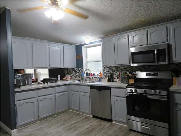 Check out the awesome view from this hilltop property! This spacious 4-bedroom, 2-bathroom home offers the perfect blend of comfort, functionality, and room to roam. Enjoy a bright and open living room/dining room combo--ideal for family gatherings and entertaining. The oversized kitchen is a chef's dream, featuring abundant cabinet space, a walk in pantry and gas stove. Luxury vinyl plank flooring runs throughout the main living areas, offering style and durability. The private master suite includes a full bath for your comfort and convenience. Step outside to enjoy both covered front and back decks--perfect for relaxing or watching the wildlife. The property includes a 30x30 two-car garage with a loft area, plus an additional 30x30 outbuilding for storage, a workshop, or hobbies. Nestled on 6 partially fenced acres with mature trees offering shade and privacy, this property is a rare find, with easy access to main highways. Whether you're looking for space to spread out, raise animals, or simply enjoy country living, this home has it all!