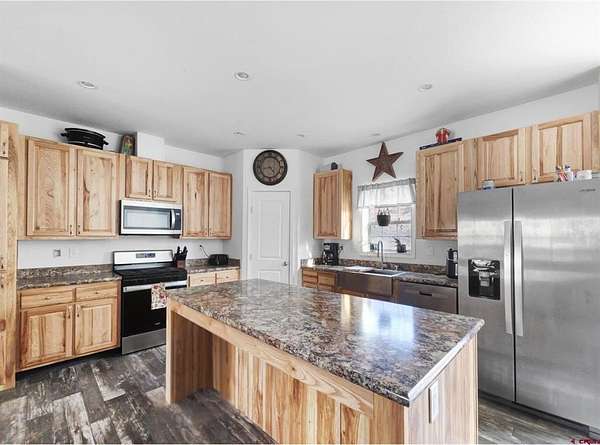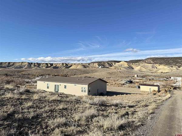 Liz Heidrick, Needlerock Mountain Realty and Land, LLC, 970-234-5344, liz.needlerock@gmail.com, http://www.needlerockrealty.com/: Discover peace and quiet, space, and opportunity on this 35+ acre property with direct access to BLM lands. The 4-bedroom, 2-bath home is tucked away in a surprisingly lush valley cutting through the striking adobe landscape. Enjoy the varied terrain, with rolling hills, beautiful views, and magnificent sunsets. A shared spring provides water for domestic use and irrigation. The existing chicken coop and fencing stays, and there is plenty of room for horses or other livestock. The acreage provides both open space and private nooks, ideal for those seeking a lifestyle close to nature with room to expand. Water is available for creating additional landscaping and gardens around the home. Outbuildings include a shed with a butcher shop and an impressive 20-foot walk-in cooler--an invaluable setup for hunters, ranchers, or anyone interested in sustainable living. This rare offering combines comfortable living with acreage, water, and resources--everything you need to create the homestead of your dreams.