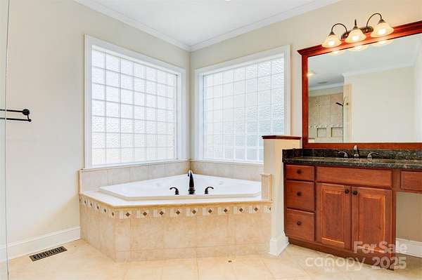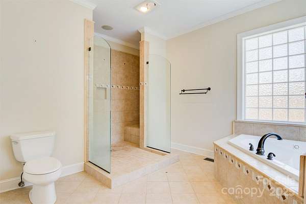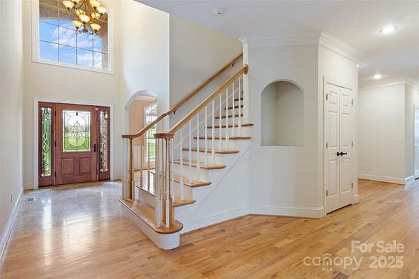 Stunning 6,000+ square feet, all brick traditional home in the prestigious Rock Barn Country Club & Spa, that truly has it all! This 4 bedroom, 4.5 bathroom home offers the perfect blend of timeless elegance & resort-style living in one of the area's most sought-after communities. From the moment you step into the grand foyer, you'll be captivated by the soaring vaulted ceilings, abundant natural light & elegant built-ins surrounding the gas fireplace. The kitchen flows seamlessly into the refreshing sunroom & onto the full-length screened in porch, perfect for morning coffee or relaxing evenings. The main level also features a formal dining room & a primary suite that serves as a true retreat, complete with a walk-in closet, dual vanity, jetted tub, & spacious walk-in shower. Upstairs, you'll find 3 additional bedrooms, 2 full bathrooms PLUS a versatile bonus room with wet bar, perfect for an office, playroom, or guest space. The finished basement is an entertainer's dream featuring a custom Art Deco theater, bar/kitchenette, 2nd living space & hot tub just steps outside on the covered patio. The unfinished area offers space for a large workshop & additional storage. The oversized 3 car garage with a sleek epoxied floor provides extra space for your classic car or golf cart! Adding to this phenomenal property is a rare opportunity for expansion or enhanced privacy. Two adjoining parcels are also available for purchase creating a combined setting for an additional 1.5+ acres. Partially cleared, level & corner-situated offer versatility for added privacy, extended outdoor living, or the potential for an additional build site within Rock Barn. Optional membership to Rock Barn Country Club & Spa offers an unmatched lifestyle with world-class amenities, including two championship golf courses, multiple tennis and pickleball courts, and an Olympic-sized pool. The private, state-of-the-art fitness center provides personal training & a variety of classes, while the luxury spa offers indulgent health and beauty services. The clubhouse features both fine & casual dining, private event spaces & a full calendar of social activities. These luxury amenities, combined with this exceptional property, create a true resort-at-home experience. Conveniently located minutes from I-40, Hwy 16, and Hwy 70. Schedule your private tour today and discover everything Rock Barn has to offer!