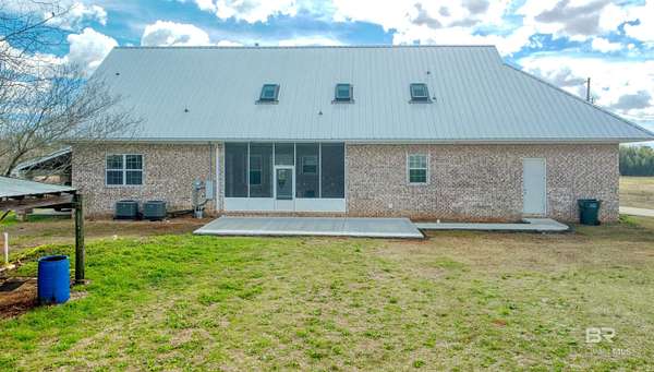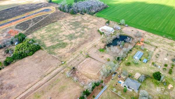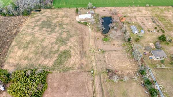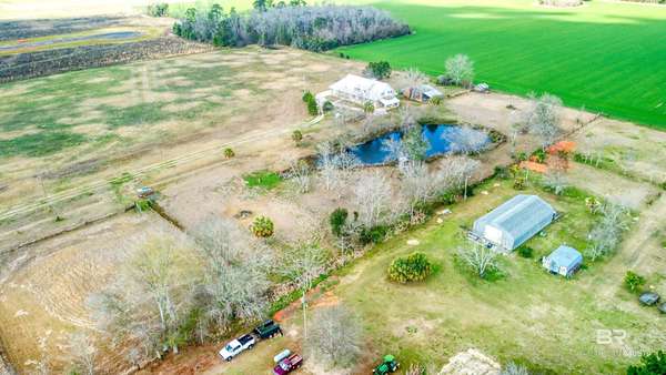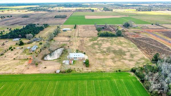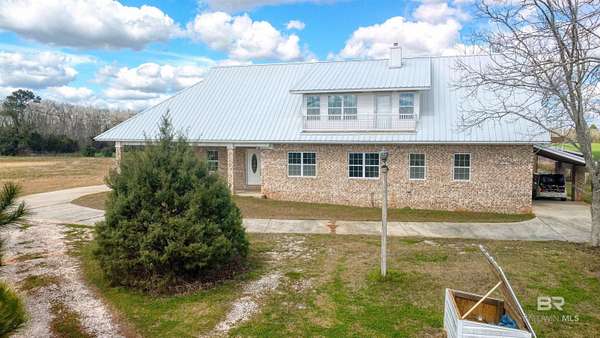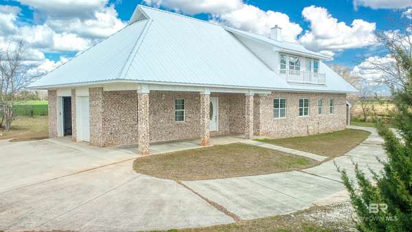 Private country living on 10 beautiful fenced acres in Elberta — less than 25 minutes to Pensacola or the white-sand beaches of Orange Beach. This custom-built 5-bedroom, 4-bath home offers 3,236 square feet of living space w/ plenty of room to spread out and enjoy the peaceful setting. An additional 3.63 acres is also available for purchase (PPIN #283249 | MLS #116859) for those looking for even more land. No HOA or restrictions, this property is ideal for a homestead, mini-farm, or private estate. The home was built w/ durability & efficiency in mind & features insulated concrete form (ICF) exterior walls, which means the walls are reinforced concrete surrounded by insulation. This construction method provides exceptional strength, energy efficiency, & storm resistance compared to traditional wood framing. Other quality features include a dimensional lumber roof system, crown molding, & solid wood interior doors. Inside you'll find 10-foot ceilings on the main level and 9-foot ceilings upstairs, w/ plenty of natural light from all the windows. The main floor includes a large laundry room, generous storage, & an open-concept kitchen & living area featuring a wood-burning stove. Just off the living room is an office or flex space, along with two bedrooms and two full bathrooms. The upstairs level can function as its own living space, making it ideal for multi-generational living, extended guests, or even rental use. It features three additional bedrooms, two full bathrooms, a living & dining area, & a mini kitchen. The walk-in attic offers even more storage and has space where a 2nd washer & dryer could easily be added. Enjoy peaceful views of the property from the upstairs balconies or from the screened-in porch off the main level, which overlooks the beautiful acreage. A large concrete patio extends beyond the porch providing additional outdoor space. A 20x25 exterior building plus adjacent storage building, RV hookup can to septic. Buyer to verify all informati