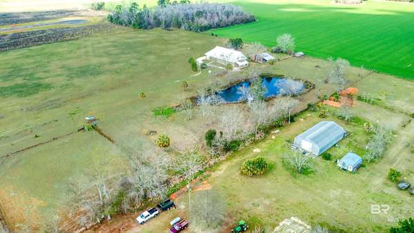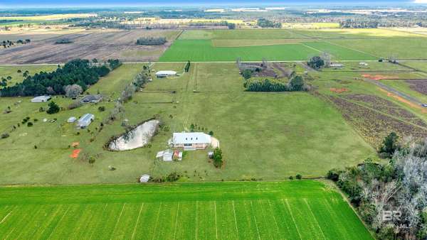 Private country living on 10 beautiful fenced acres in Elberta — less than 25 minutes to Pensacola or the white-sand beaches of Orange Beach. This custom-built 6-bedroom, 4-bath home offers 3,236 square feet of living space w/ plenty of room to spread out and enjoy the peaceful setting. An additional 3.63 acres is also available for purchase (PPIN #283249 | MLS #116859) for those looking for even more land. No HOA or restrictions, this property is ideal for a homestead, mini-farm, or private estate. The home was built w/ durability & efficiency in mind & features insulated concrete form (ICF) exterior walls, which means the walls are reinforced concrete surrounded by insulation. This construction method provides exceptional strength, energy efficiency, & storm resistance compared to traditional wood framing. Other quality features include a dimensional lumber roof system, crown molding, & solid wood interior doors. Inside you'll find 10-foot ceilings on the main level and 9-foot ceilings upstairs, w/ plenty of natural light from all the windows. The main floor includes a large laundry room, generous storage, & an open-concept kitchen & living area featuring a wood-burning stove. Just off the living room is an office or flex space, along with two bedrooms and two full bathrooms. The upstairs level can function as its own living space, making it ideal for multi-generational living, extended guests, or even rental use. It features three additional bedrooms, two full bathrooms, a living & dining area, & a mini kitchen. The walk-in attic offers even more storage and has space where a 2nd washer & dryer could easily be added. Enjoy peaceful views of the property from the upstairs balconies or from the screened-in porch off the main level, which overlooks the beautiful acreage. A large concrete patio extends beyond the porch providing additional outdoor space. A 20x25 exterior building plus adjacent storage building, RV hookup can to septic. Buyer to verify all informati