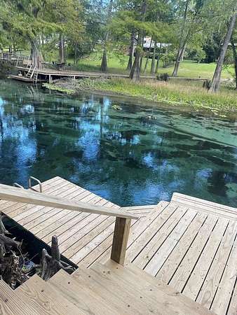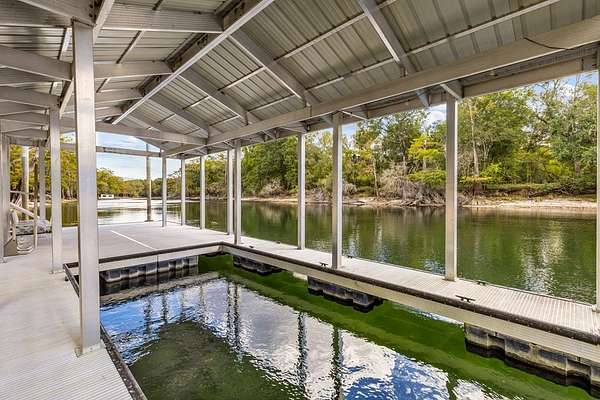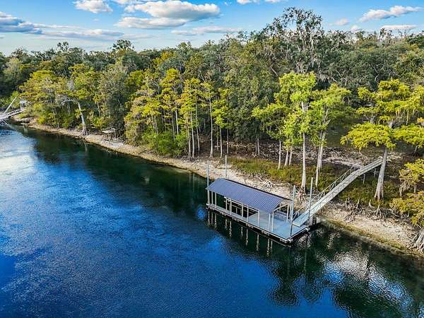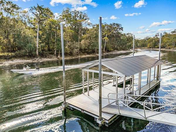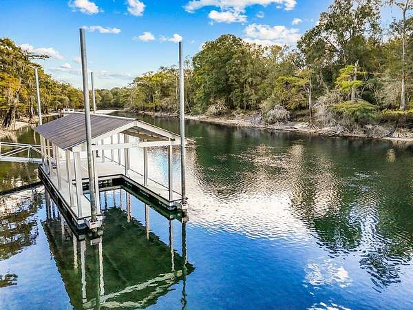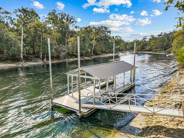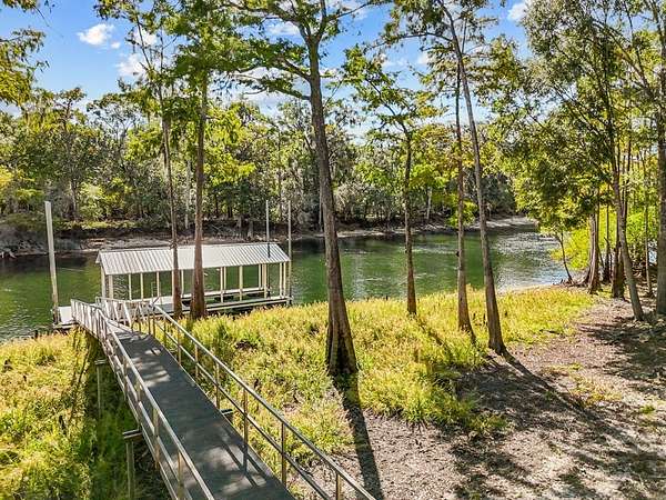 Discover your river retreat! Nestled on 1.86 acres with direct 163 feet of frontage on the scenic Santa Fe River, this property comes fully equipped with power, water, and 2024 septic already in place, making it ready for your river adventures, RV, or dream home. A permitted 2022 aluminum floating dock with a 10x20 boat slip, bench, ladder, and solar lighting makes launching, swimming, lounging, or fishing a breeze. Follow the boardwalk with PEX water lines to the dock, where a convenient spigot and hose make cleanup simple and easy. Behind the gated entry, privacy meets functionality with cedar surrounds, a concrete sitting area, and nine water spigots across three irrigation zones. The oversized metal shed with large doors provides plenty of space for storage, river gear, or even a workshop. You'll also find flint rock landscaping, a natural rock seawall, fruit trees, and a beautifully maintained yard. Located in Ichetucknee River Estates, you'll have community access to a private boat ramp just down the road and Leroy Brown Park, directly on the Ichetucknee River, offering another easy launch spot for your river adventures. Bring the boat, the RV, or your dream home plans--this property is made for fun, relaxation, and outdoor enjoyment. A must-see!