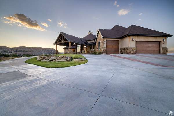 Discover a rare opportunity to own a magnificent estate in Vernal, where luxury meets tranquility! Step inside to find an abundance of natural light that floods the expansive living spaces, enhanced by high ceilings and elegant hardwood and tile floors. The gourmet kitchen is a culinary enthusiast's dream, featuring granite countertops and top-of-the-line stainless steel appliances, all set against the backdrop of vaulted ceilings, recessed lighting, and gorgeous views. Outdoor living takes center stage with a covered balcony, ideal for entertaining or simply enjoying the breathtaking views that surround you. Each room in this home has been thoughtfully designed with custom built-ins and modern finishes that exude sophistication. The luxurious master bath offers a spa-like retreat, while walk-in closets provide the ultimate convenience. A dedicated loft allows for extra space without sacrificing comfort. The finished basement offers additional living space, bedrooms, bathrooms, a second kitchen, and a home theater (that could be a bedroom) perfect a basement apartment (with it's own entrance), or extra space for you or your guests. The 360 degree views from the large picture windows, balcony, and porch absolutely speak for themselves. Sit back and enjoy the New Years and 4th of July fireworks, and relax as you watch the Dinah Soar Days hot air balloons fly high from the comfort of your home. Schedule a private tour today and immerse yourself in luxury living. Square footage per previous appraisal. Property boundaries in photos are an estimate only. Buyer to verify all information.