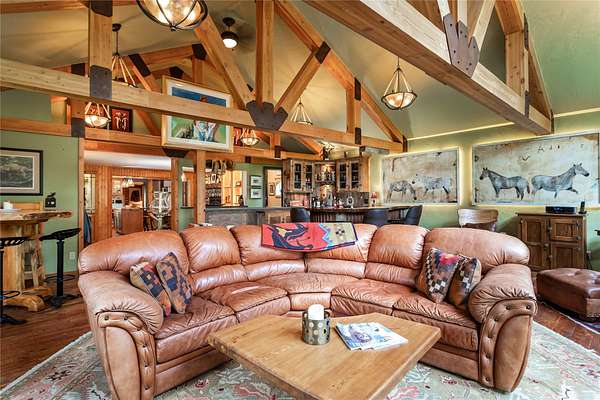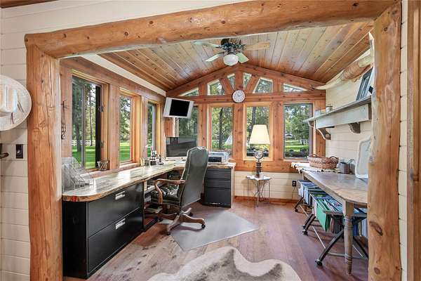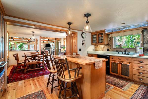 Shady Lane River Ranch awaits your western lifestyle. Imagine yourself in the main level ranch house on expansive Swan River with the alpenglow warming the majestic Swan Mountains as your background. The trappers cabin was built onsite in the 1940s and has seamlessly been incorporated into the home with two separate additions to the ranch house. Cozy fireplaces greet you in the great room and dining area warming both hearth and heart. The spacious kitchen offers plenty of prep room and modern appliances. The study offers an opportunity for privacy and quiet contemplation with a screened-in porch and sauna beyond the terrace. The grand primary bedroom offers the glow of the stove and numerous built-ins. Step out onto the terrace to the bunkroom, sauna, and secret garden. Guests will enjoy their separate quarters adjacent to the meadow, arena, corrals, barn, seasonal stream, and pond. North boundary is 100 acres of Montana State Trust Land. Mostly furnished guest house utilized as short-term rental. Two amazing homes for you to choose: main house on waterfront and log secondary dwelling near your four-footed friends, corrals and shelter. Main house offers two bedrooms and three baths with 2,523 sq. ft. Guest house offers two bedrooms and one bath with 1,002 sq ft. Two RV hook-ups for additional income producing opportunities. Water Rights for Swan River, pond, and artesian well. Owner finance possible. A short drive to the amenities of Bigfork Village. Lifestyle opportunities in the Bob Marshall, Jewel Basin, Whitefish Mountain Resort, Blacktail, and Glacier National Park. The cities of Kalispell and Whitefish are within range for supplies. Need to get out of Dodge? Glacier Park International Airport is your gateway to the world beyond.